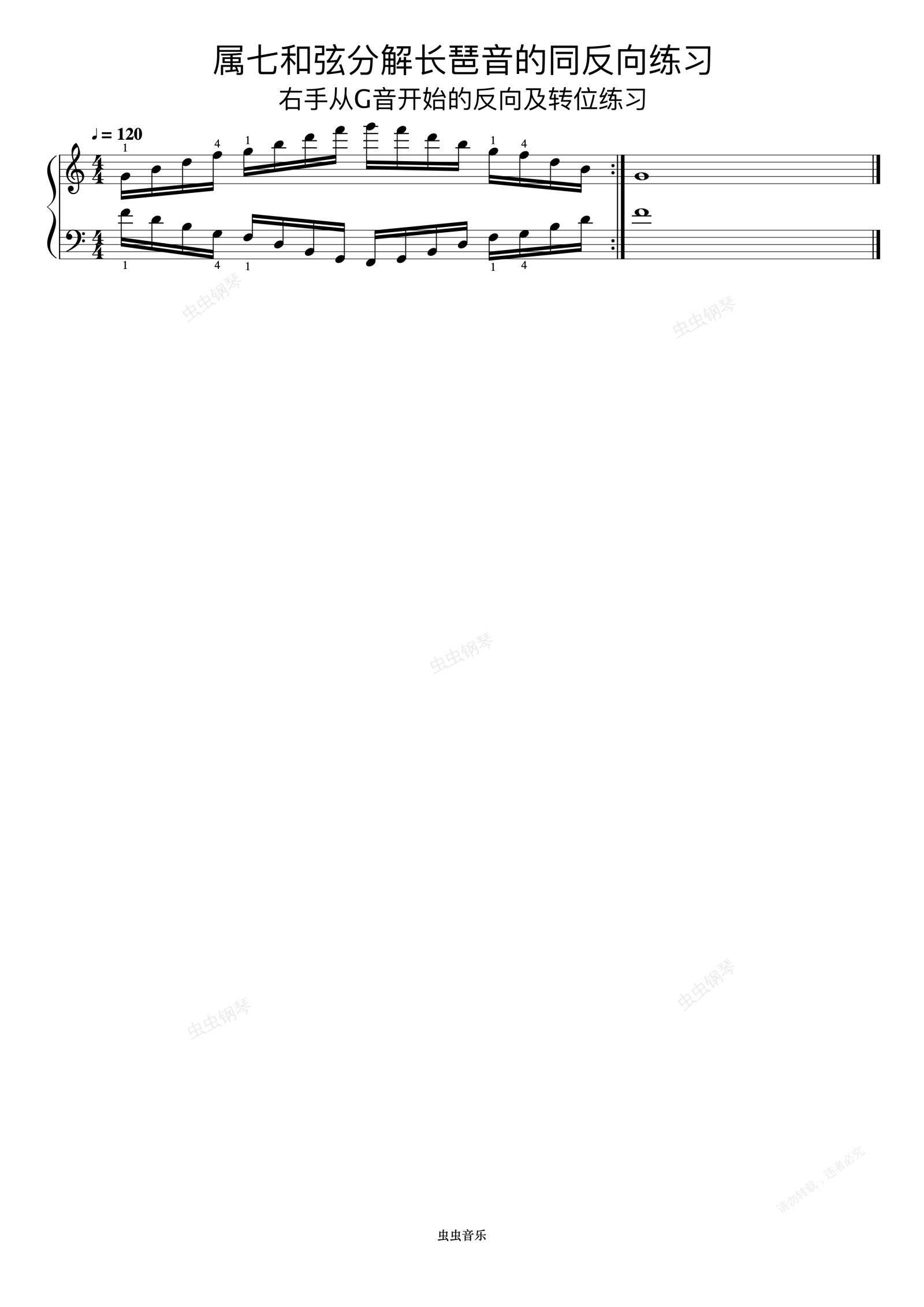 钢琴谱:属七和弦分解长琶音的同反向练习05《什密特钢琴手指练习》