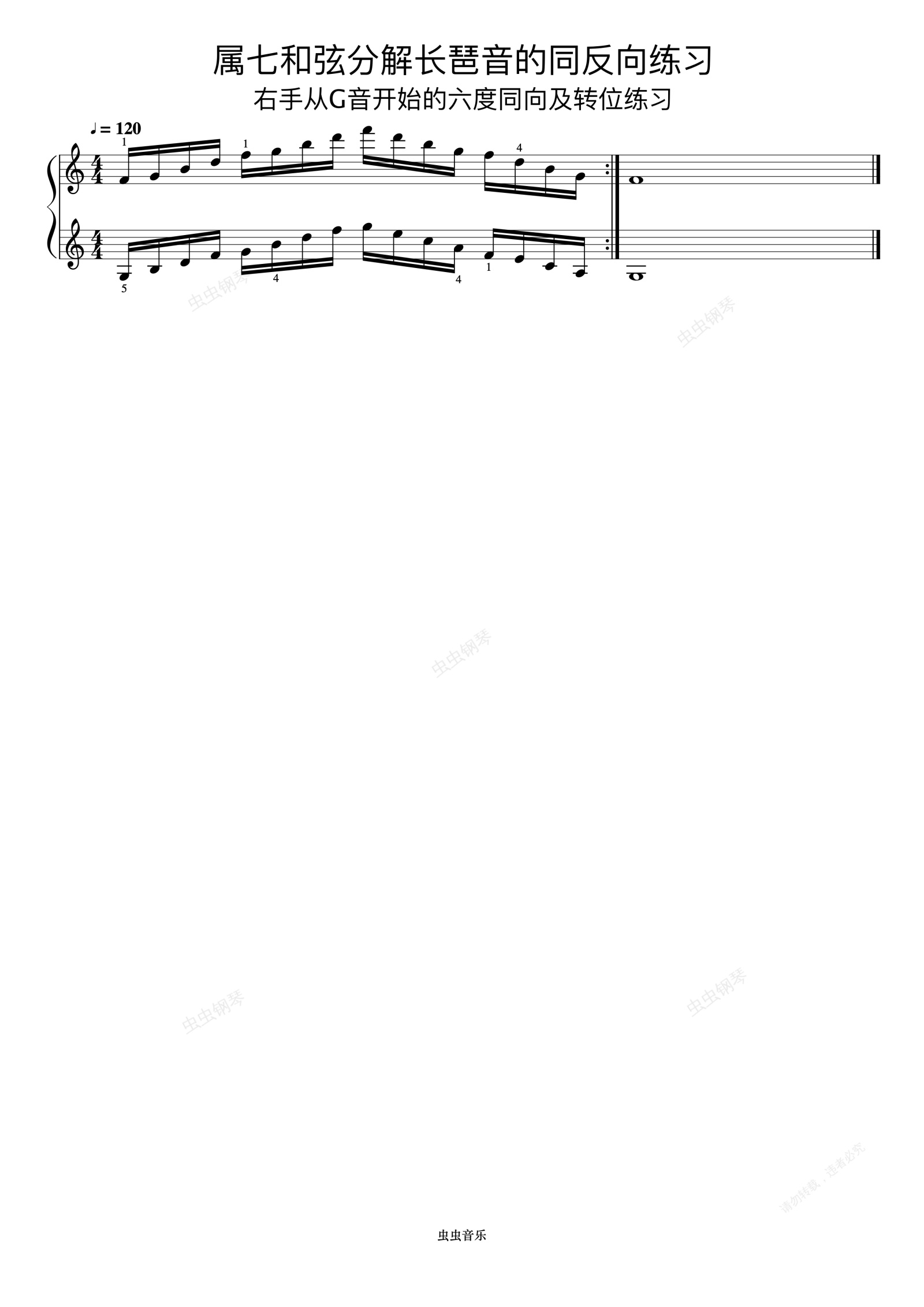钢琴谱:属七和弦分解长琶音的同反向练习04《什密特钢琴手指练习》