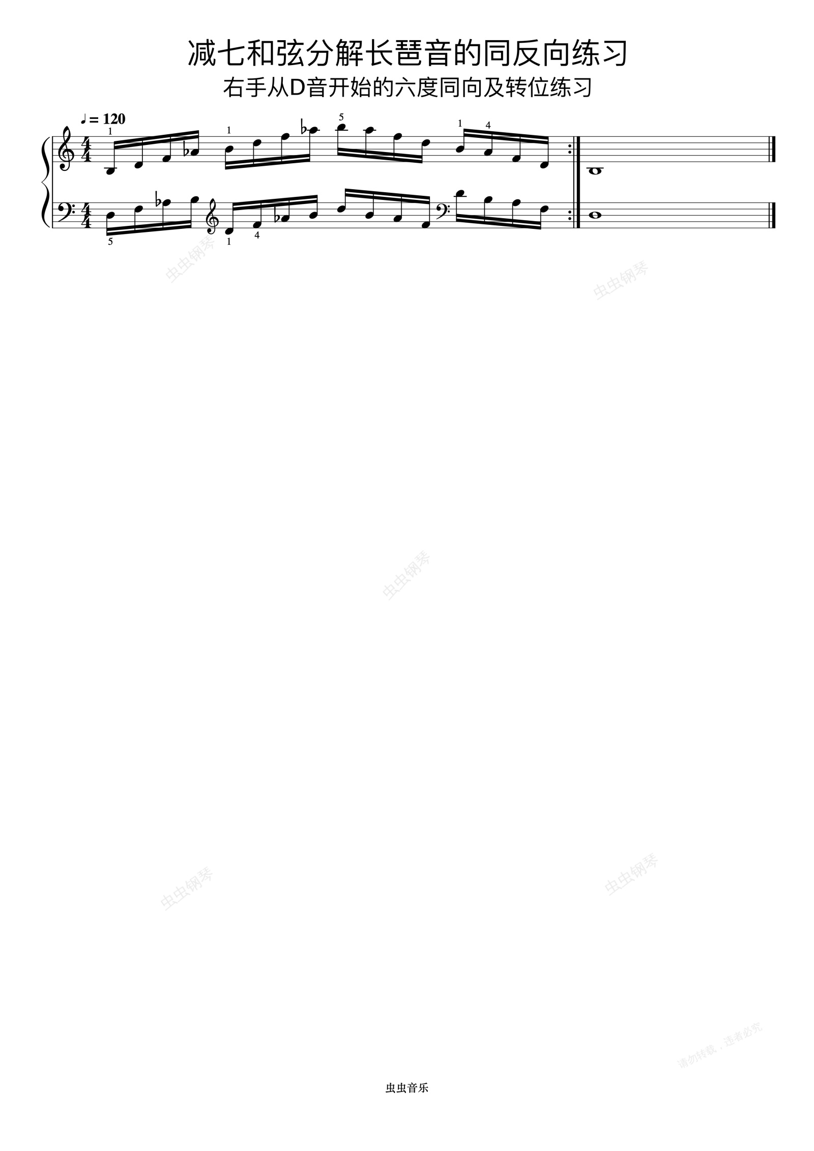钢琴谱:减七和弦分解长琶音的同反向练习12《什密特钢琴手指练习》