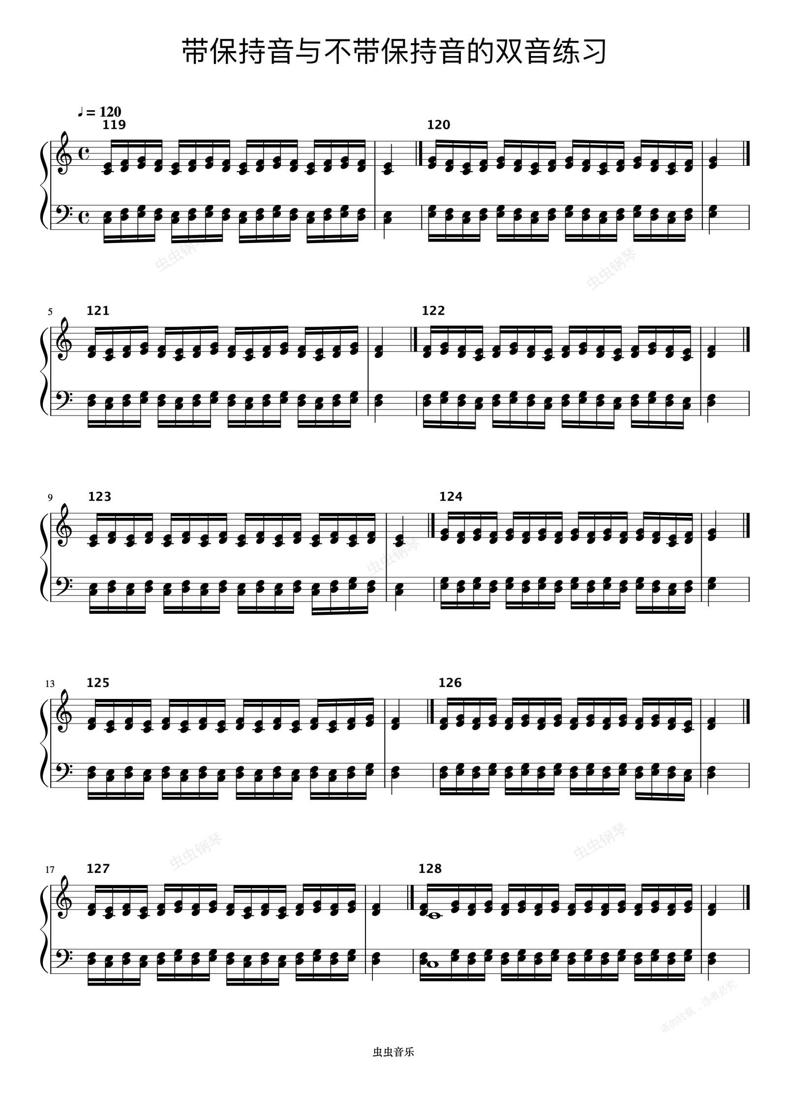 钢琴谱:带保持音与不带保持音的双音练习《什密特钢琴手指练习》