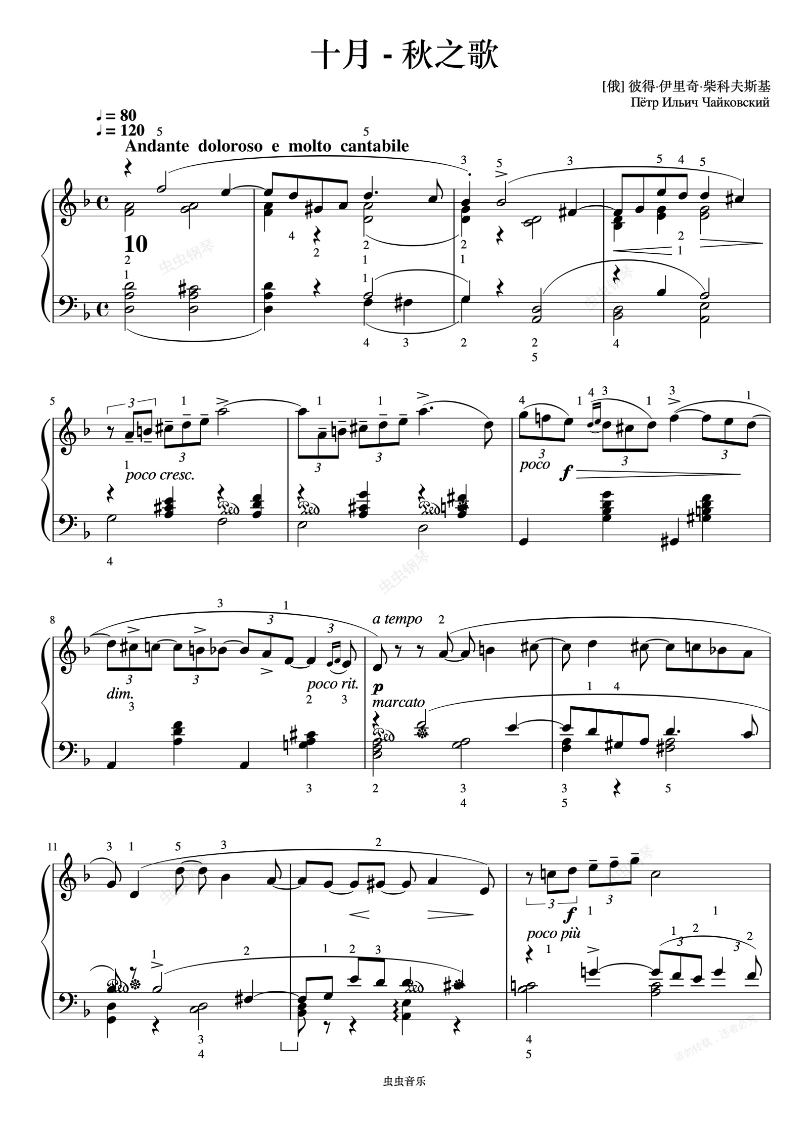 钢琴谱:柴科夫斯基 四季—十月《世界钢琴名曲集》
