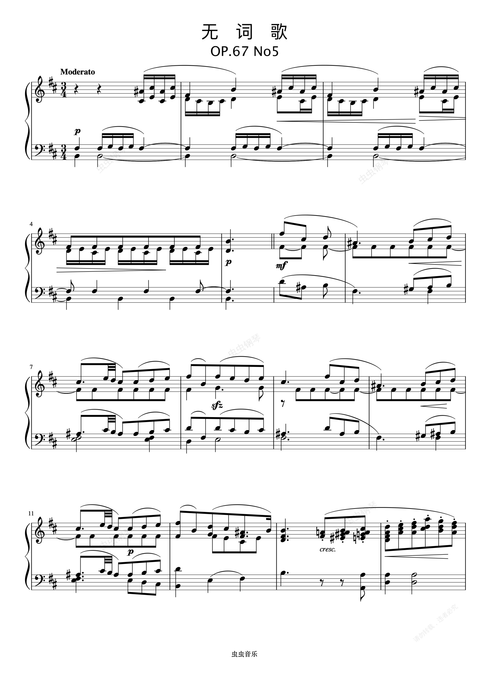钢琴谱:无词歌op.67 No.5《世界钢琴名曲集》