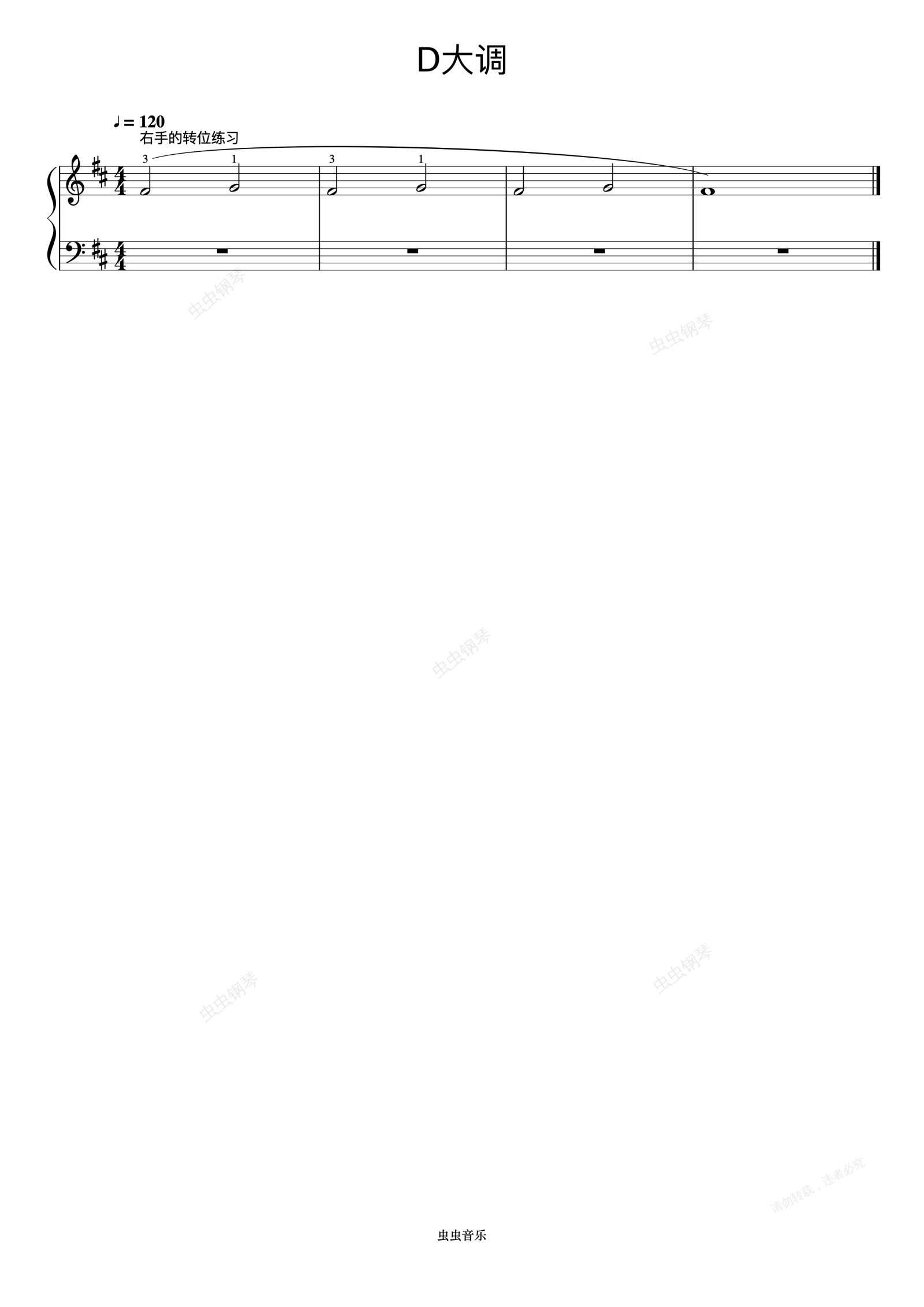 钢琴谱:D大调 右手的转位练习《手指训练操》