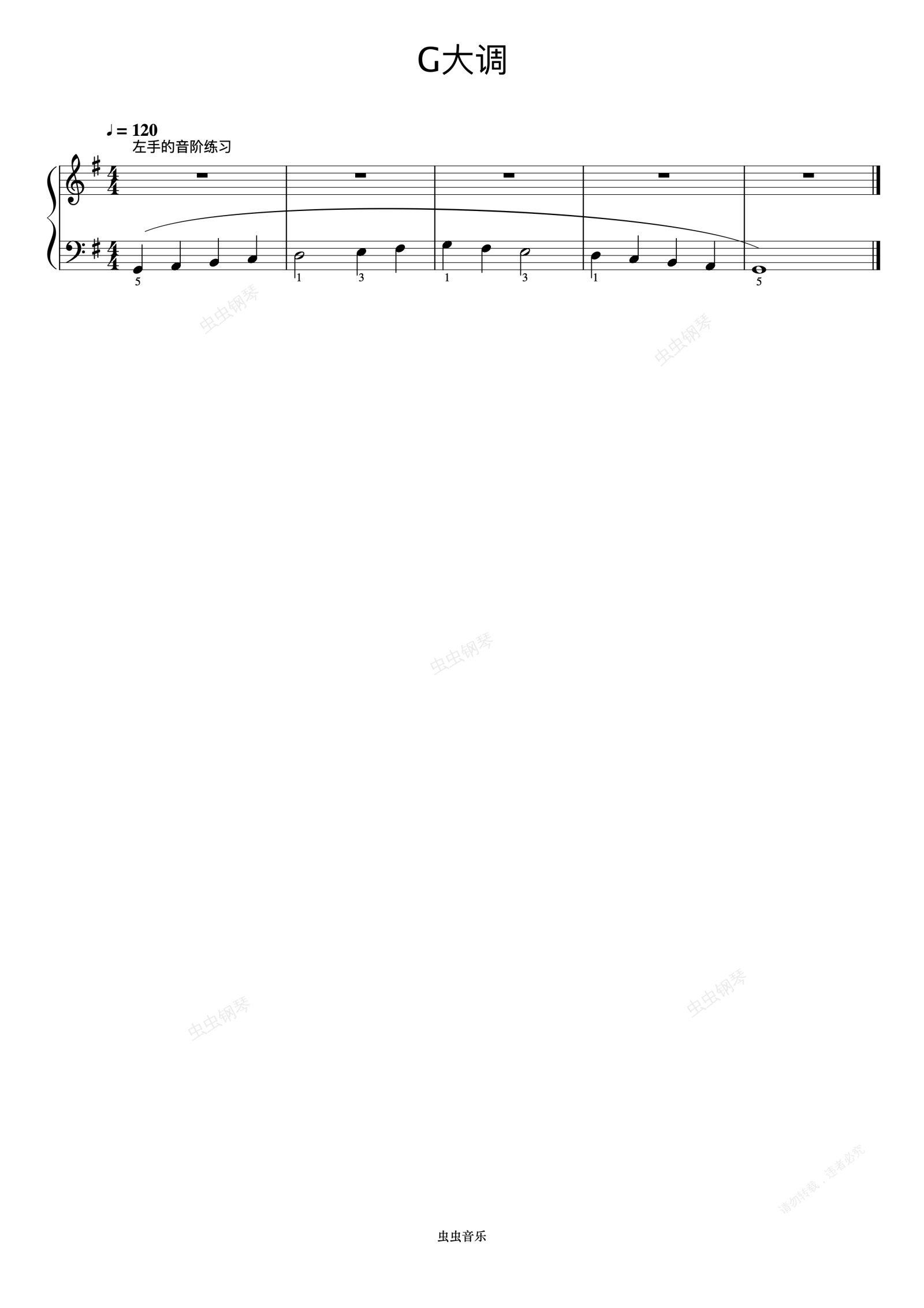 钢琴谱:G大调 左手的音阶练习《手指训练操》