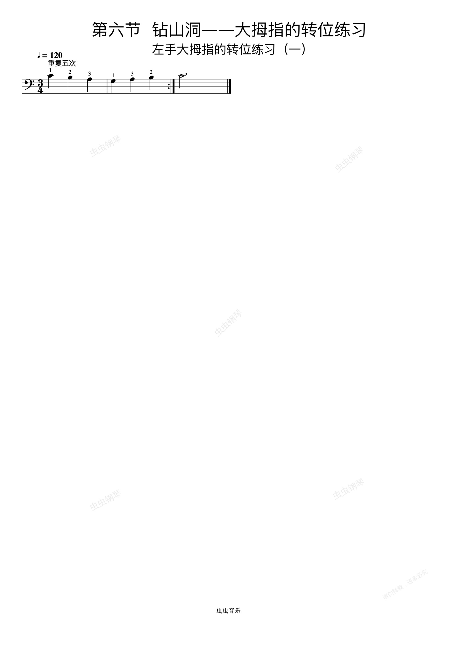 钢琴谱:左手大拇指的转位练习(一)-2《手指训练操》