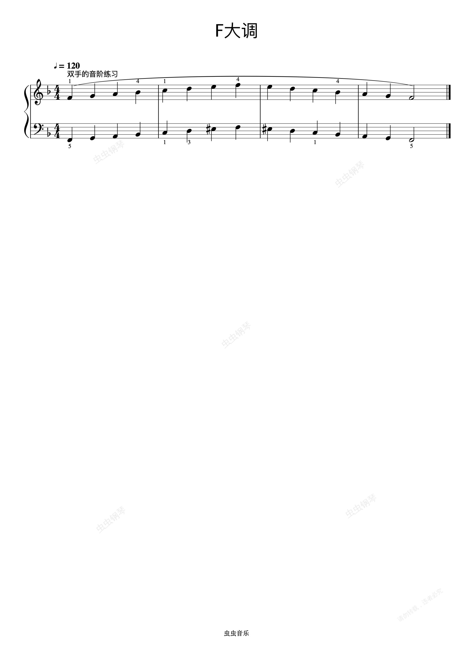钢琴谱:F大调 双手的音阶练习《手指训练操》