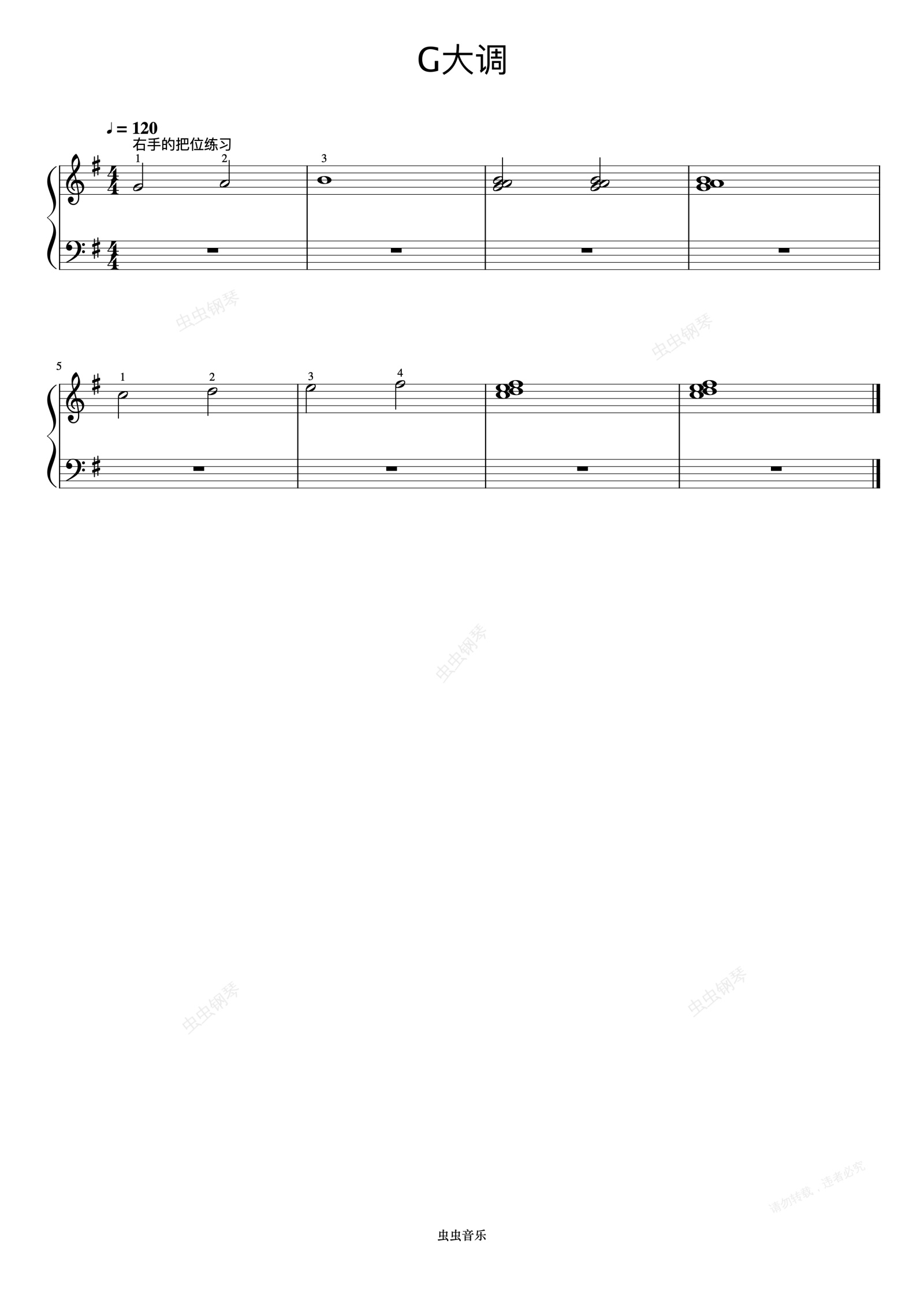 钢琴谱:G大调 右手的把位练习《手指训练操》
