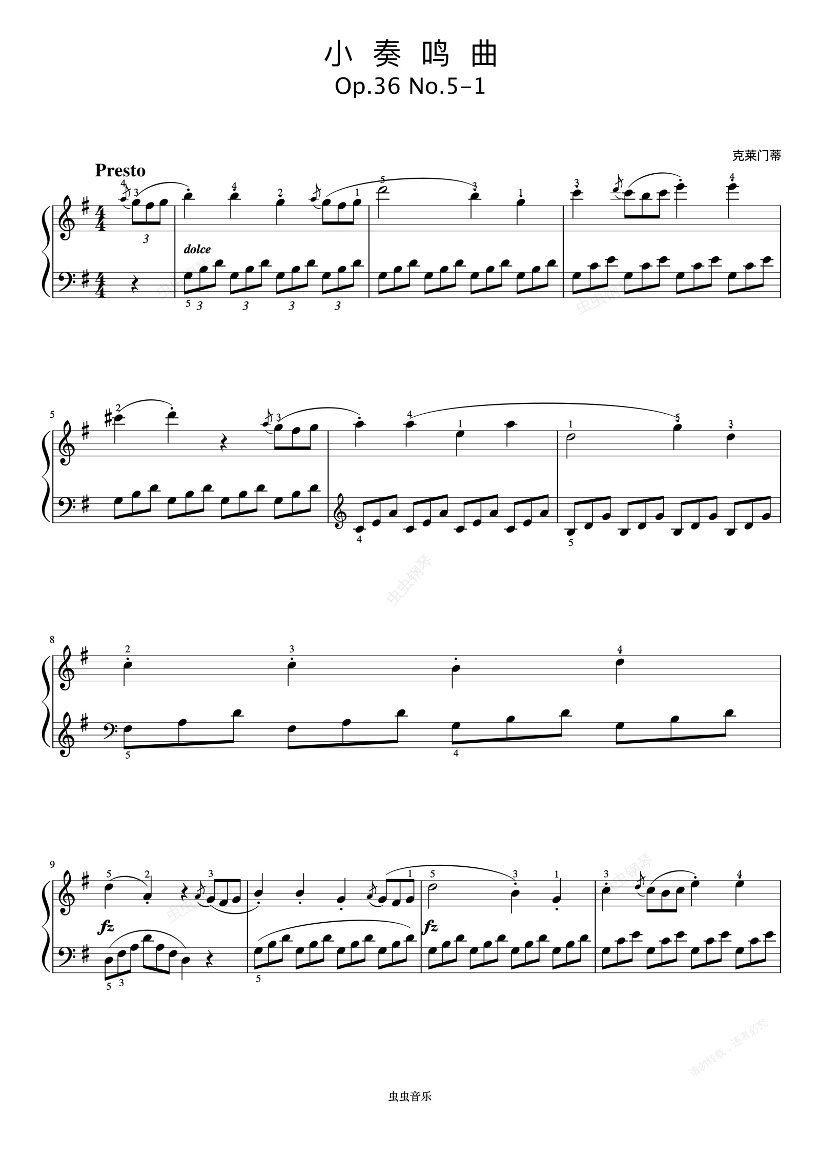 钢琴谱:小奏鸣曲 Op.36 No.5 第一乐章《小奏鸣曲集》
