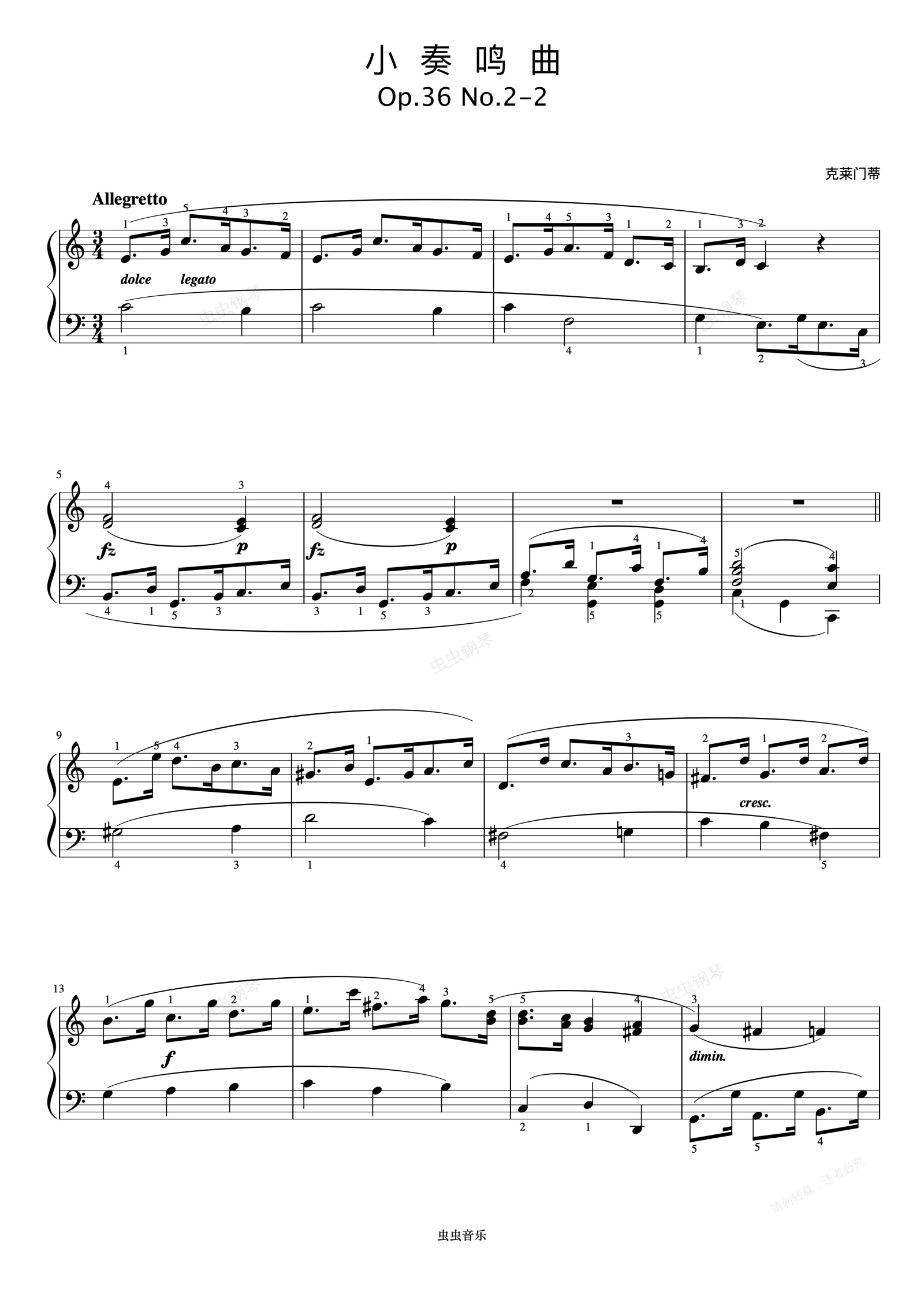 钢琴谱:小奏鸣曲 Op.36 No.2 第二乐章《小奏鸣曲集》