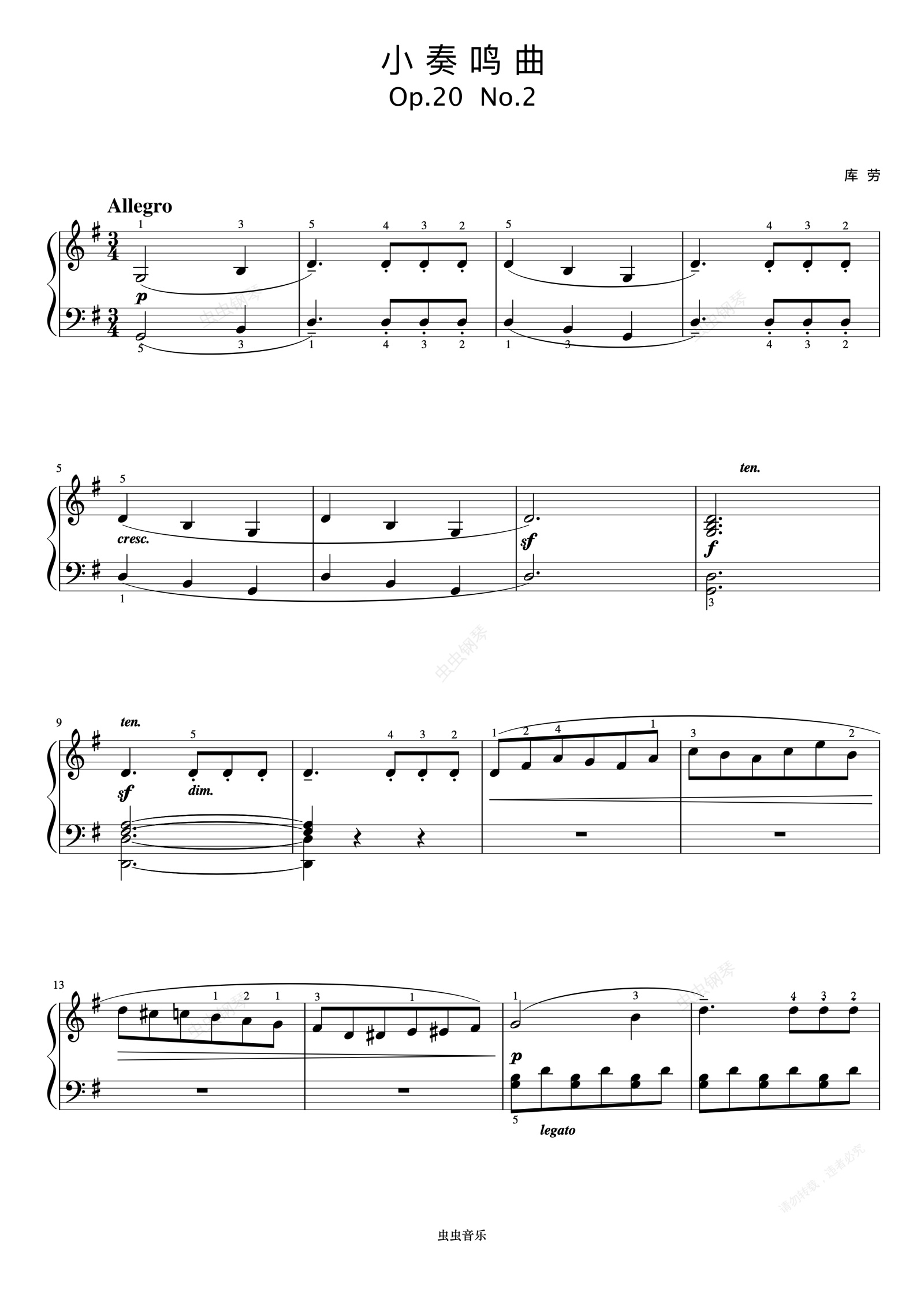 钢琴谱:小奏鸣曲 Op.20 No.2 第一乐章《小奏鸣曲集》