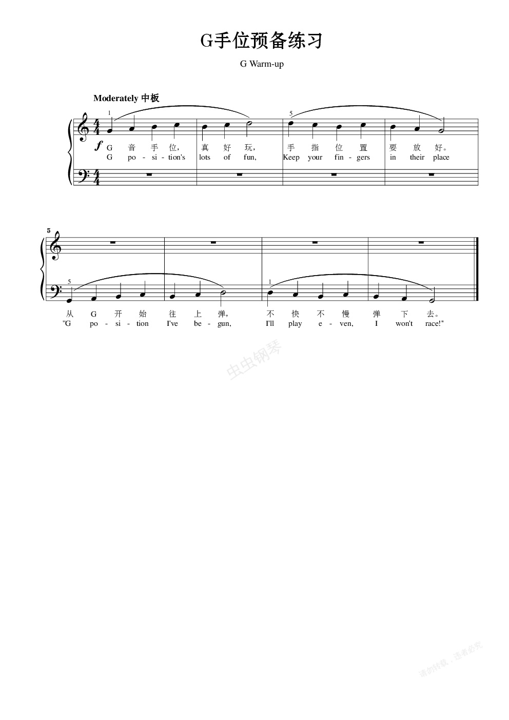 钢琴谱:G手位预备练习