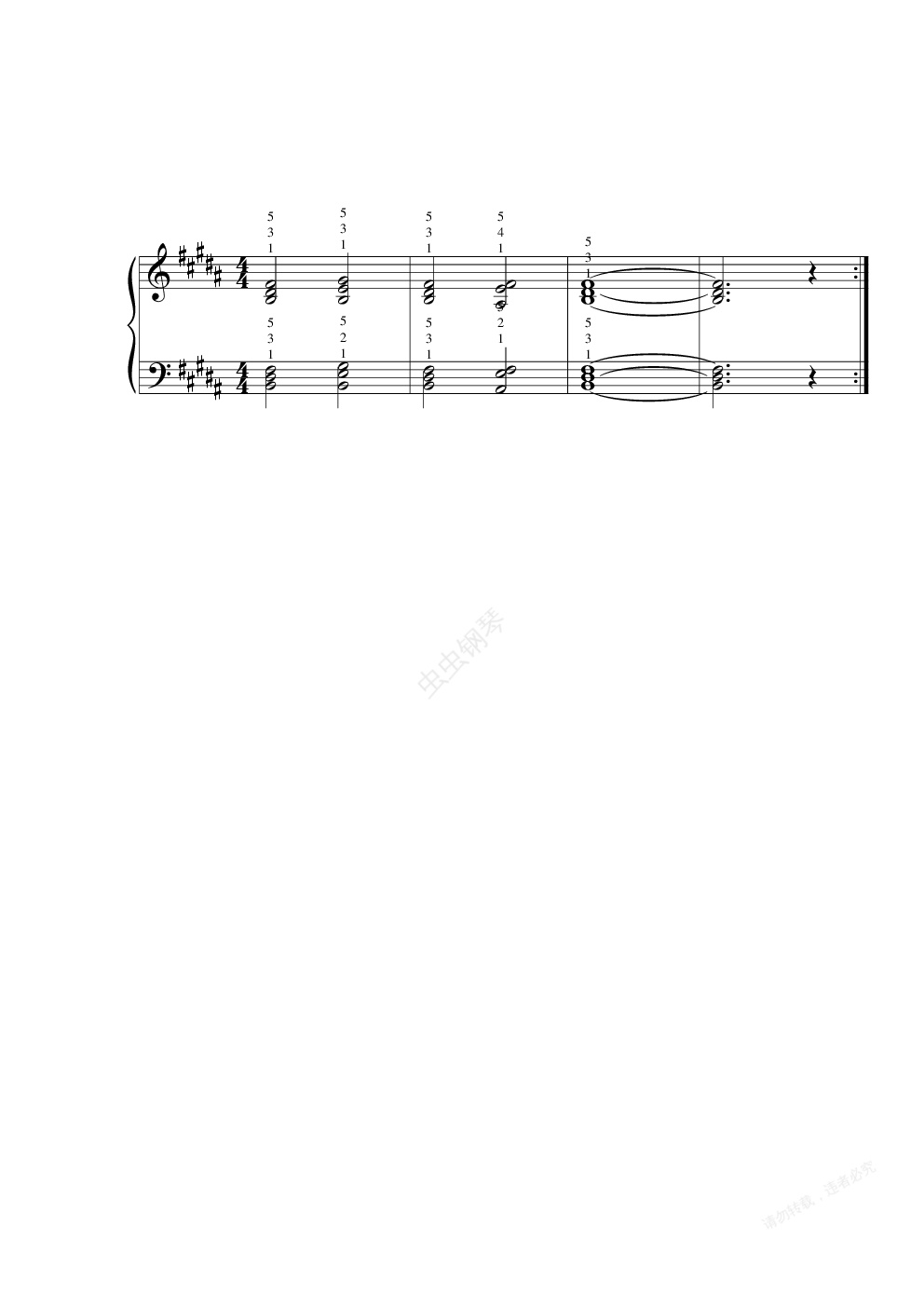 钢琴谱:B大调的主要和弦