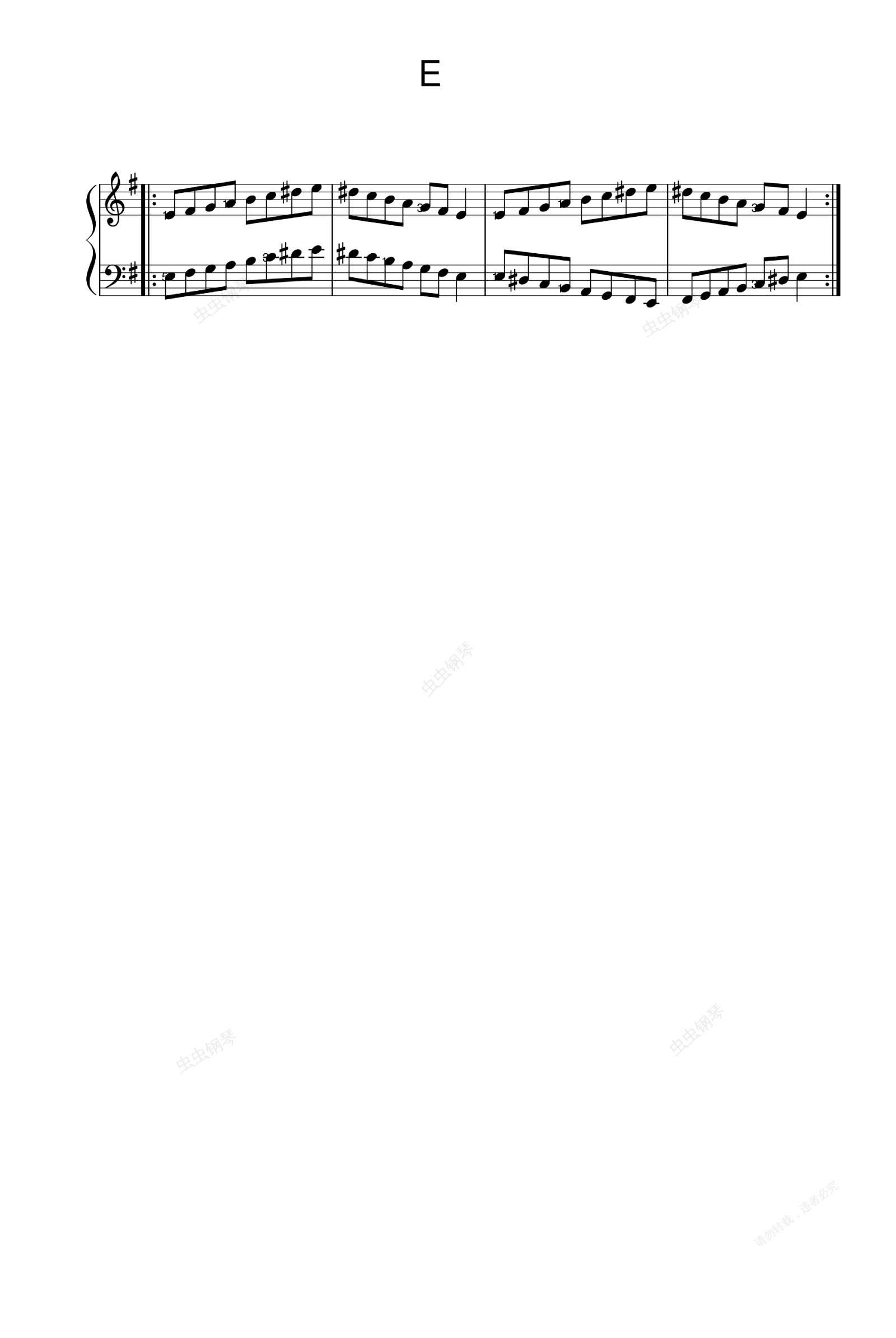 钢琴谱:E和声小调音阶