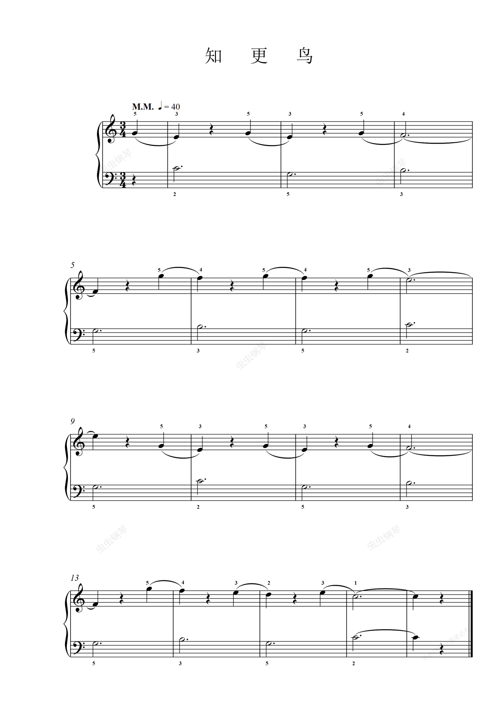 钢琴谱:10.知更鸟《约翰汤普森 现代钢琴教程1》