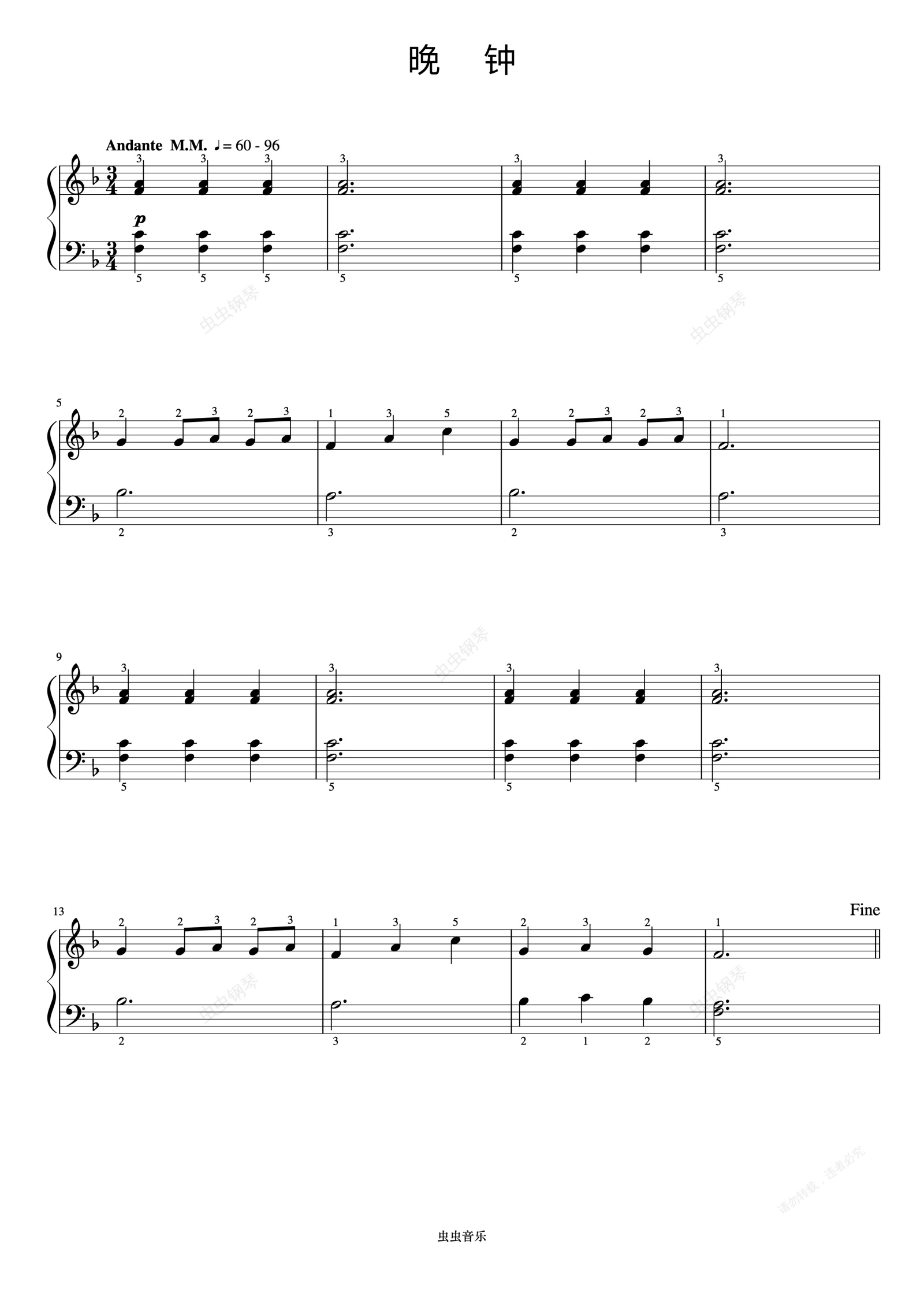 钢琴谱:48.晚钟《约翰汤普森 现代钢琴教程1》