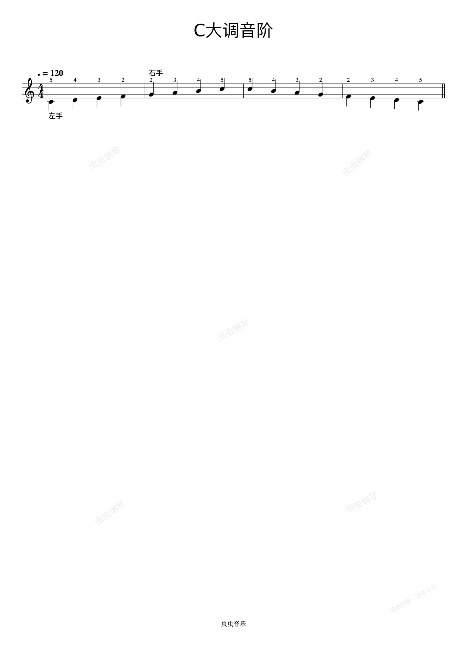 钢琴谱:17.C大调音阶《约翰汤普森 现代钢琴教程1》