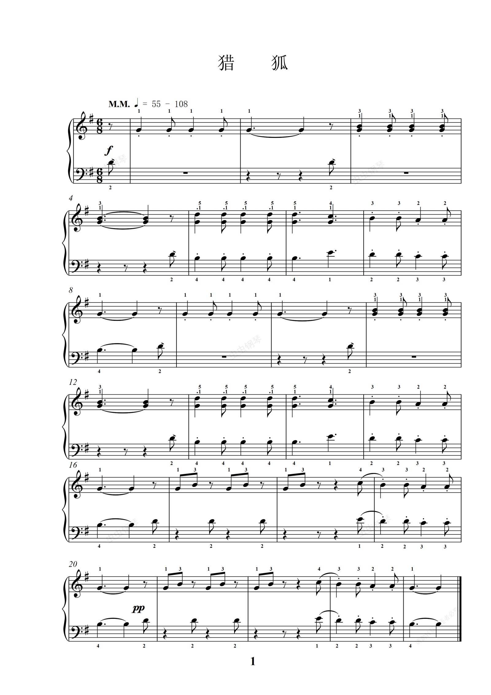 钢琴谱:43.猎狐《约翰汤普森 现代钢琴教程1》