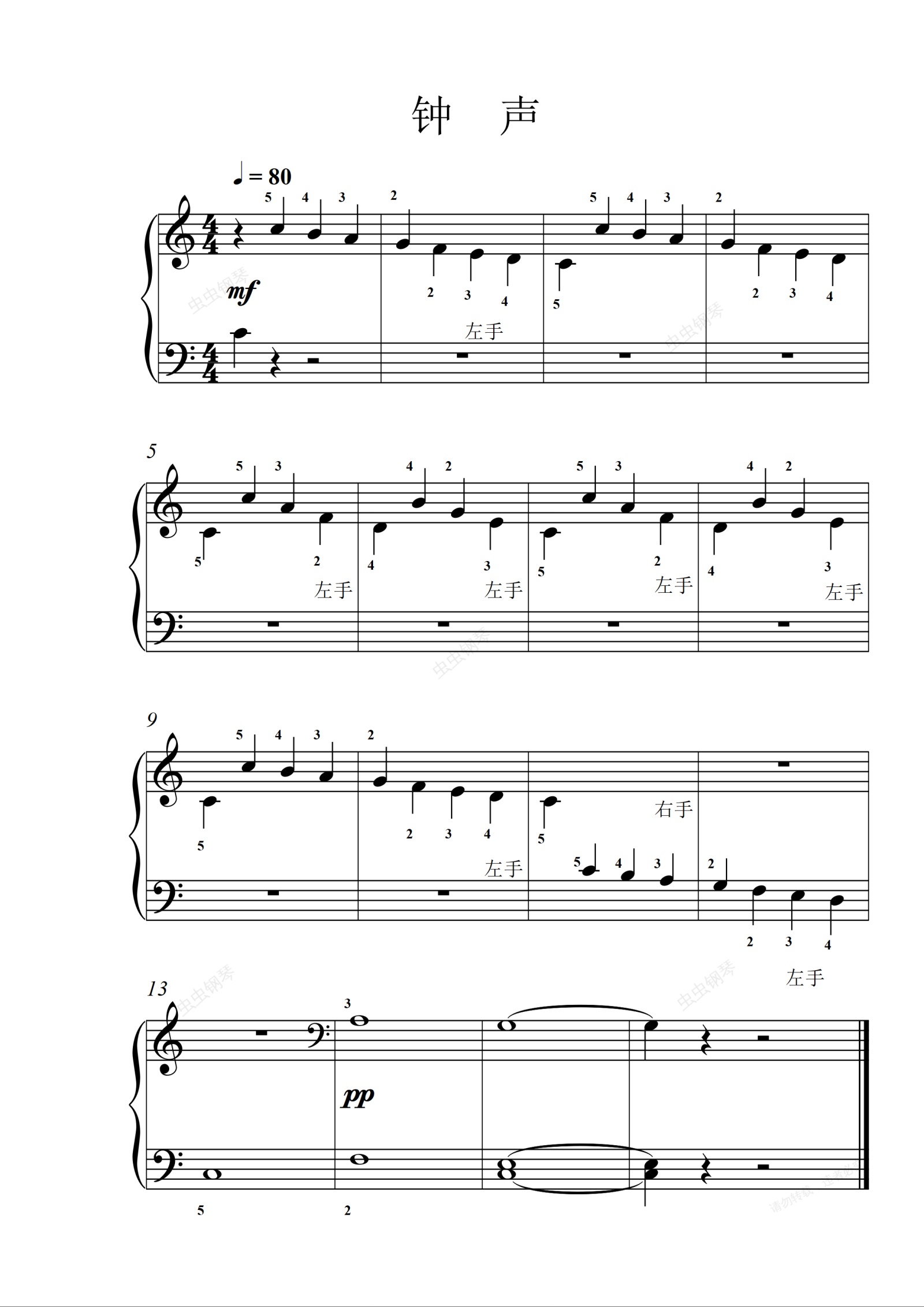 钢琴谱:18.钟声《约翰汤普森 现代钢琴教程1》