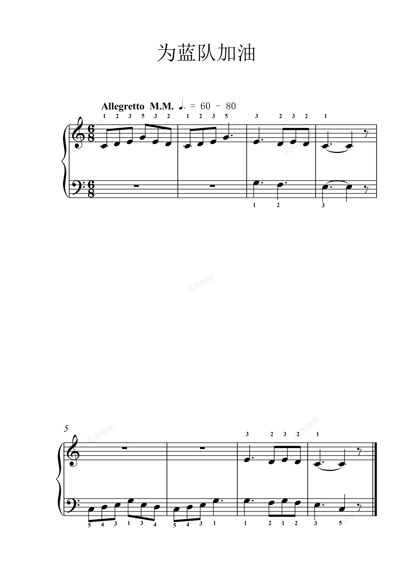 钢琴谱:36.为蓝队加油《约翰汤普森 现代钢琴教程1》
