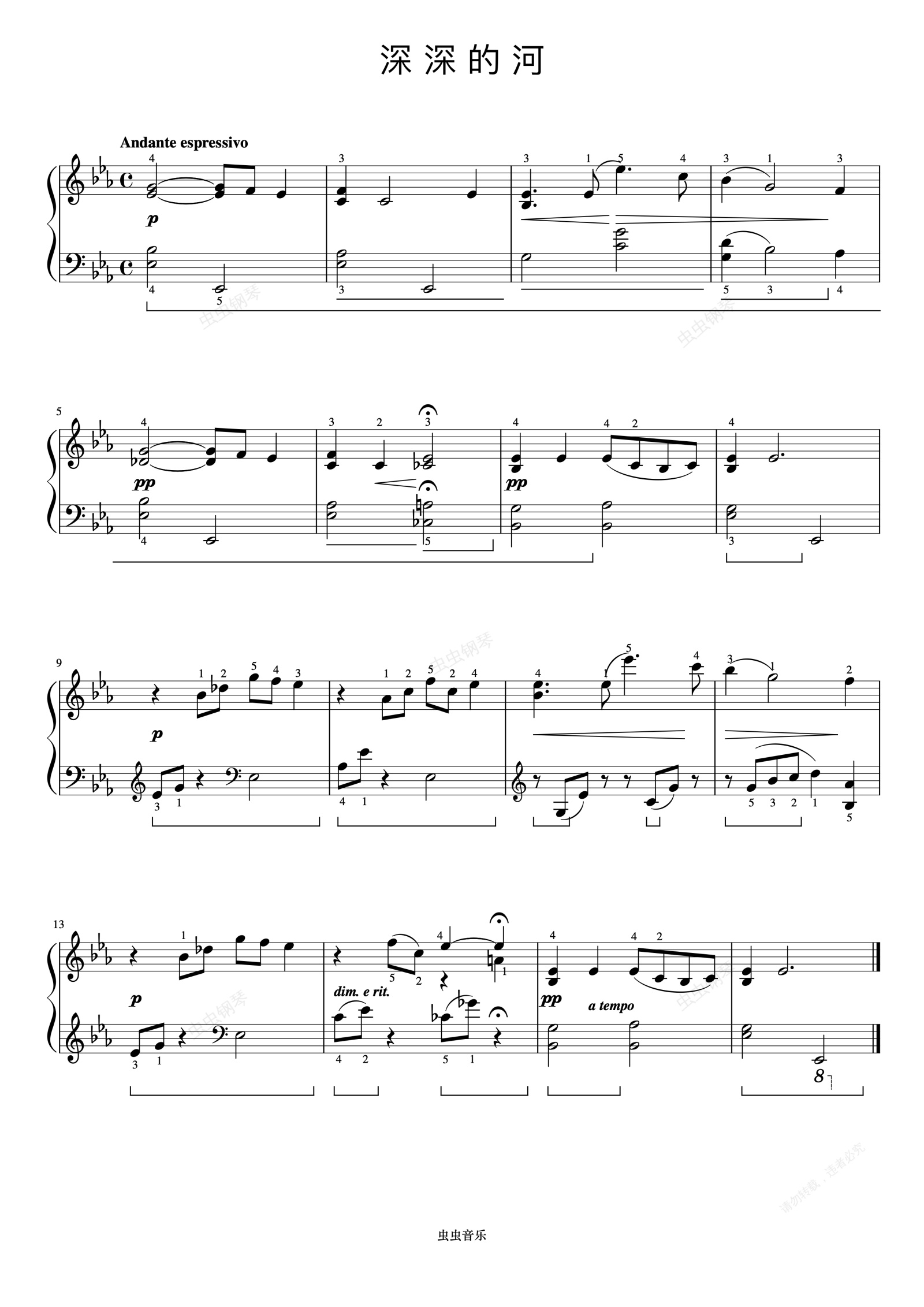 钢琴谱:37.深深的河《约翰汤普森 现代钢琴教程2》