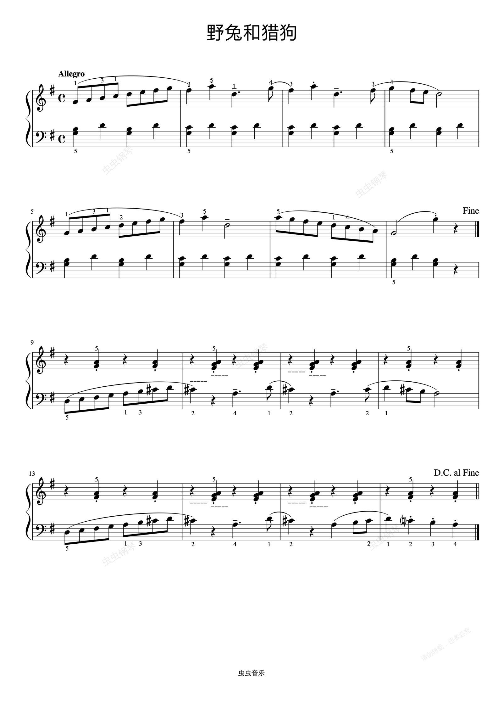 钢琴谱:25.野兔和猎狗《约翰汤普森 现代钢琴教程2》