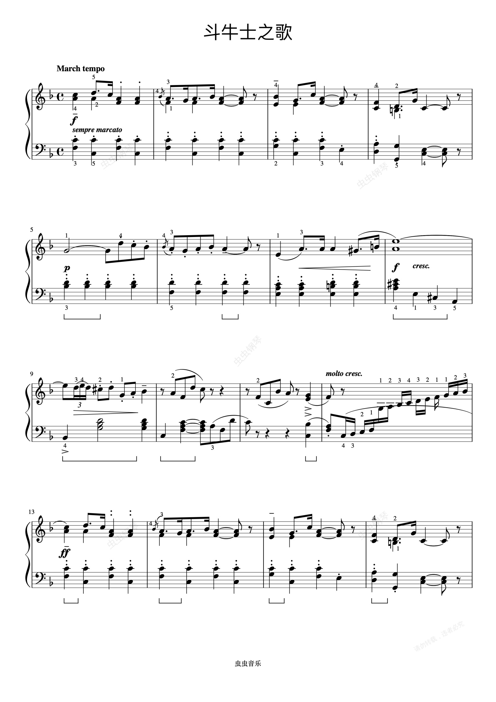 钢琴谱:4.斗牛士之歌《约翰汤普森 现代钢琴教程3》