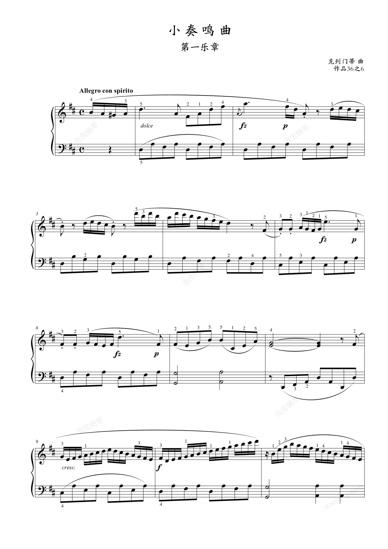 钢琴谱:第六级 小奏鸣曲(作品36之6第一乐章)