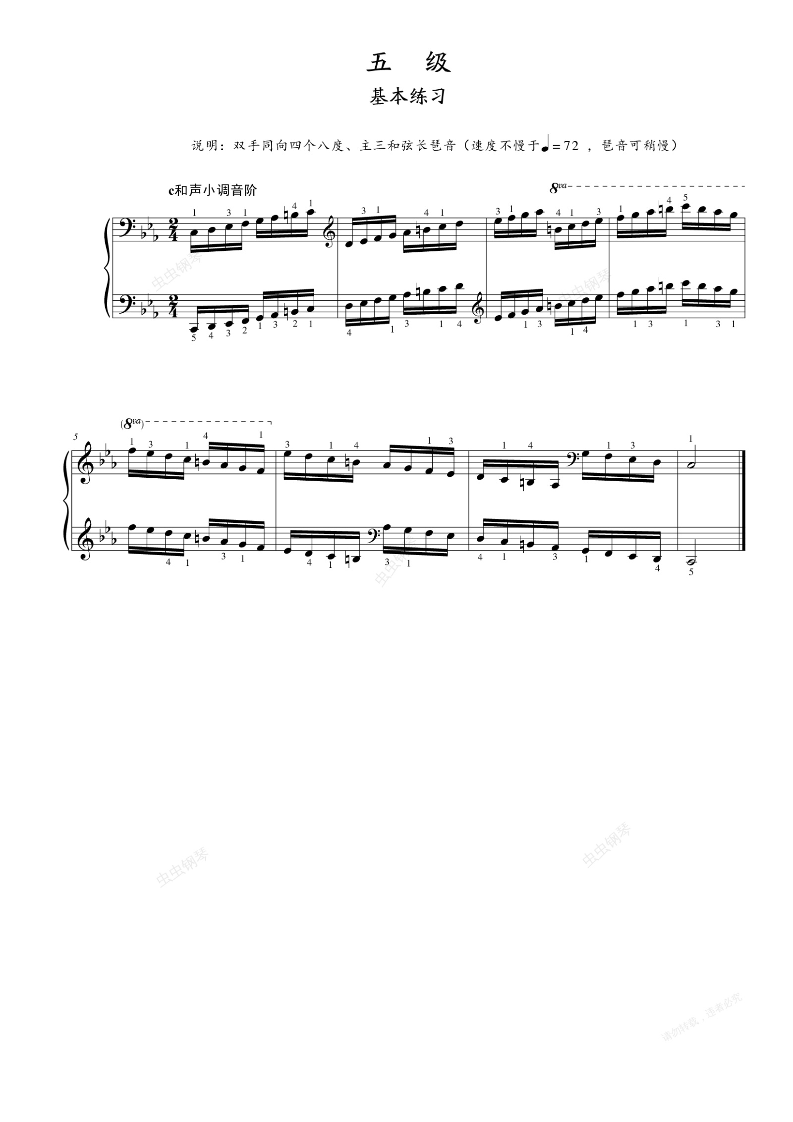 钢琴谱:第五级 基本练习 c和声小调音阶
