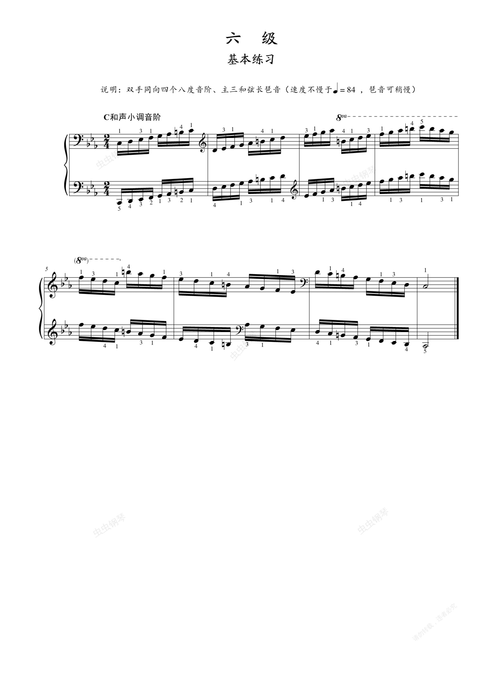 钢琴谱:第六级 基本练习 C和声小调音阶
