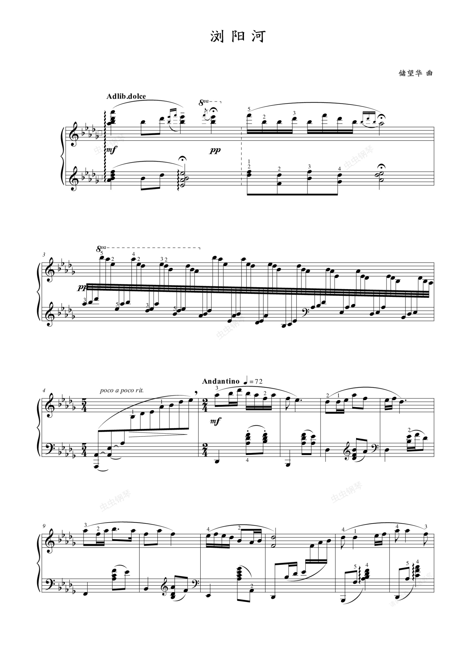 钢琴谱:第八级 第八级10中外乐曲(浏阳河)