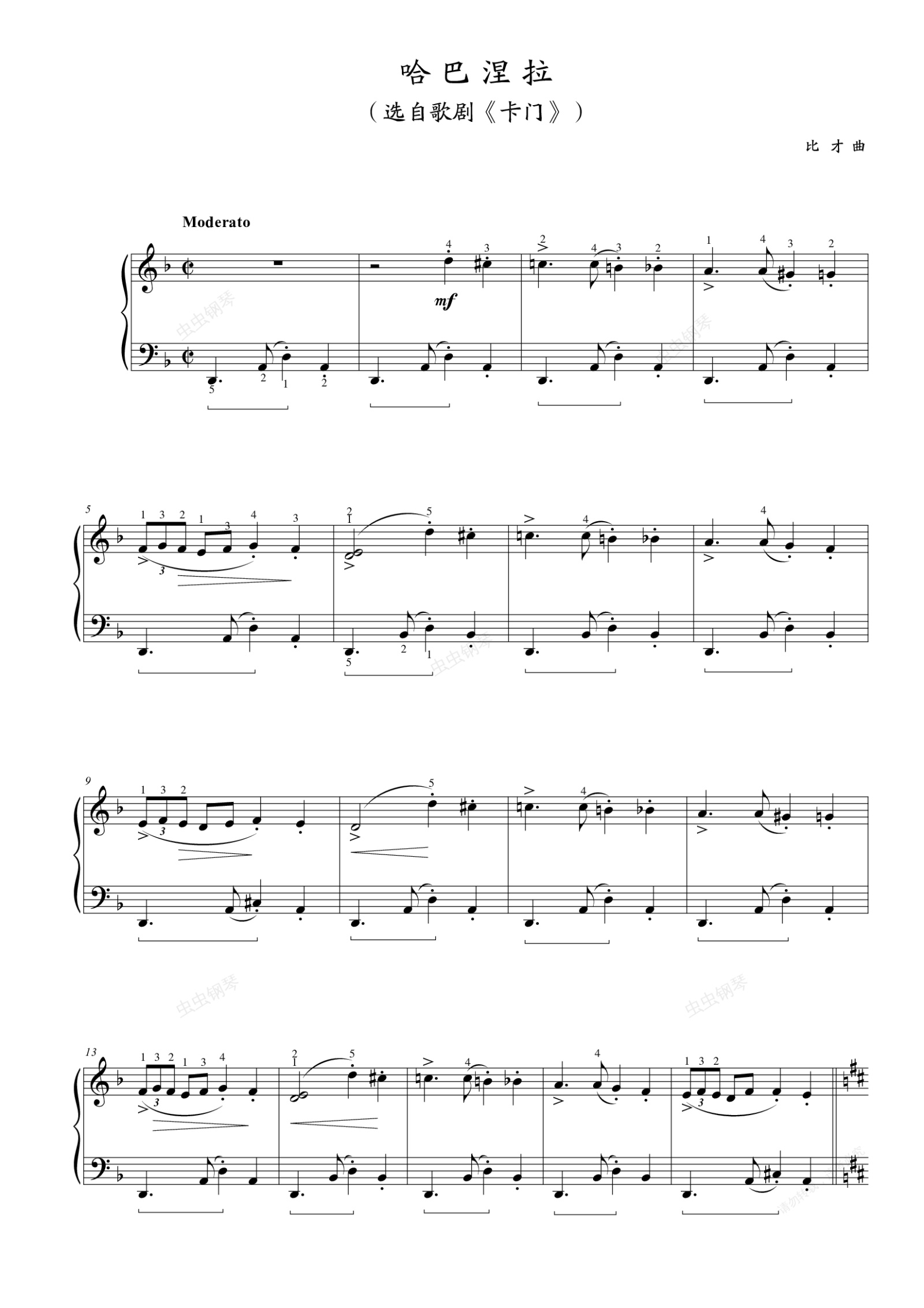 钢琴谱:第三级 哈巴涅拉(选自歌剧《卡门》)