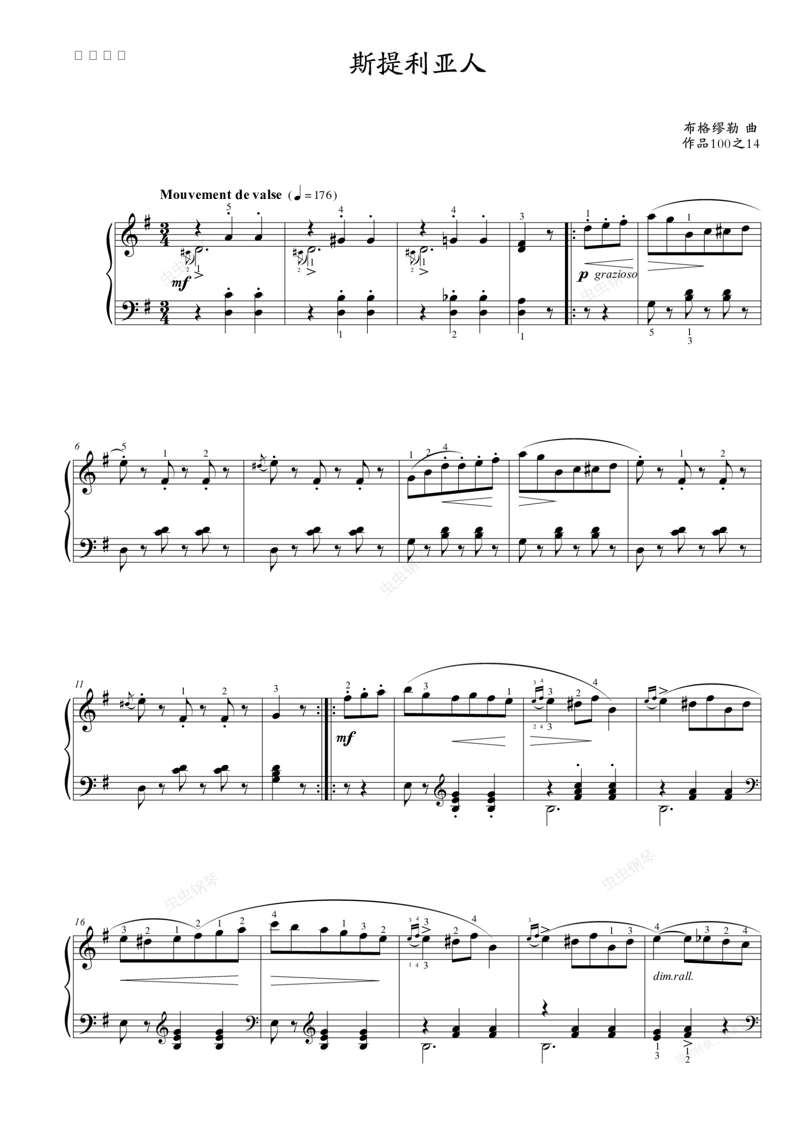 钢琴谱:第四级 斯提利亚人(作品100之14)