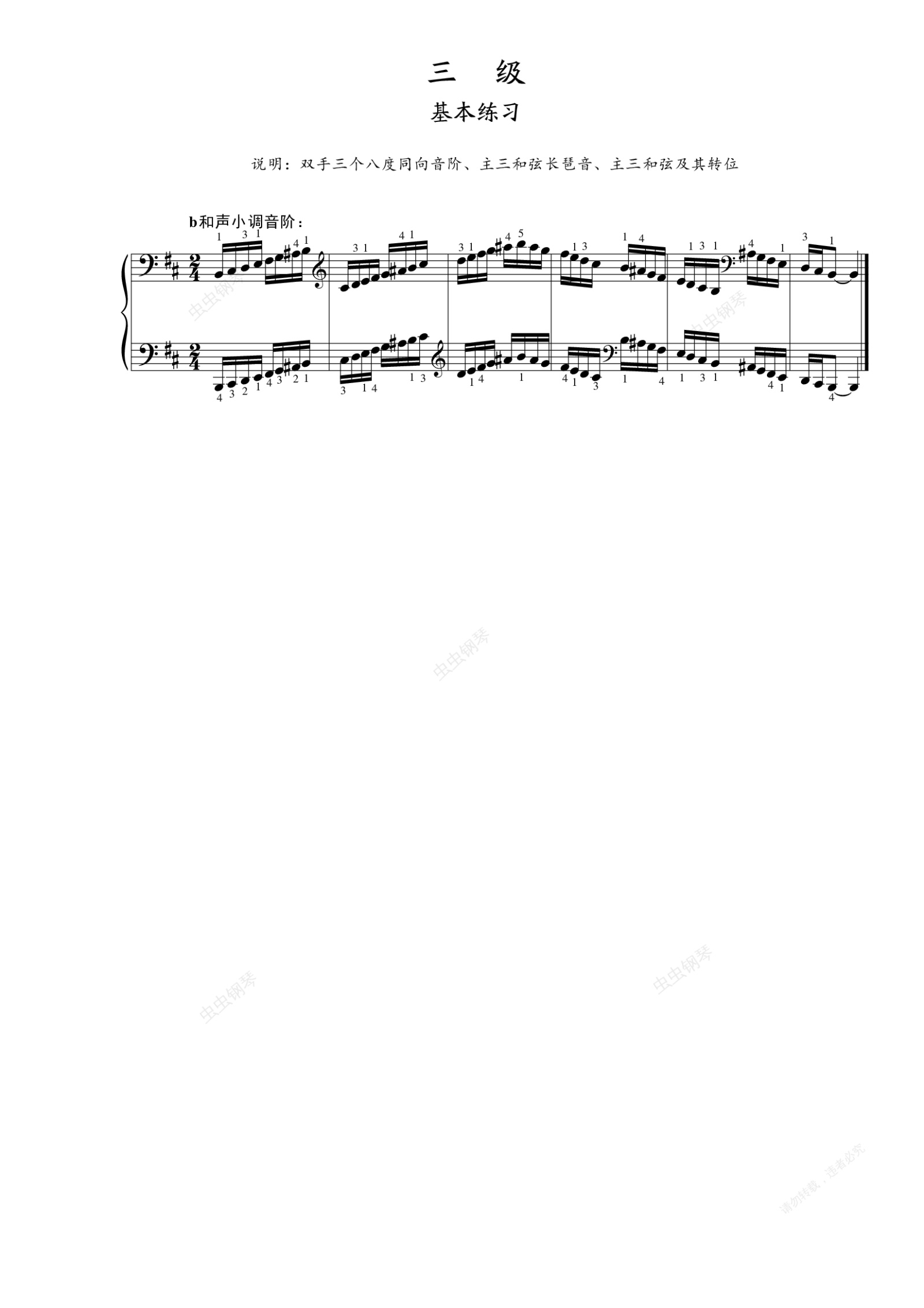 钢琴谱:第三级 基本练习 b和声小调音阶