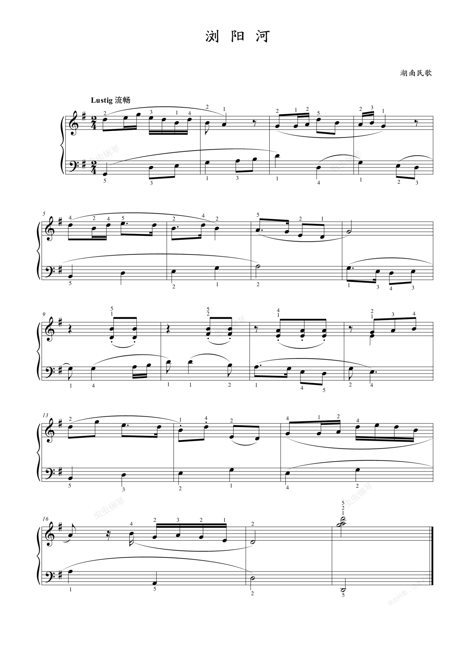 钢琴谱:第二级 浏阳河