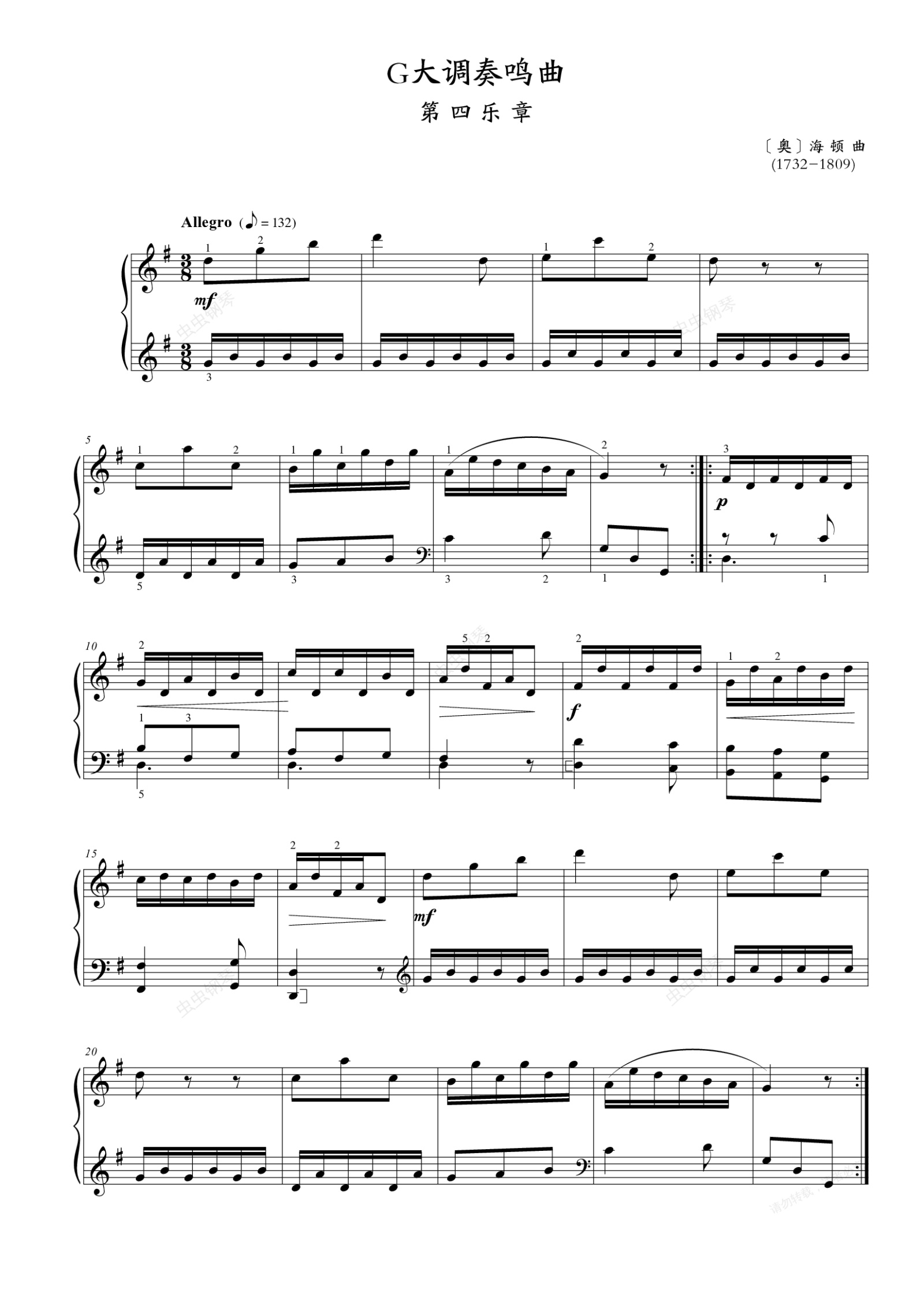钢琴谱:第二级 G大调奏鸣曲(第四乐章)