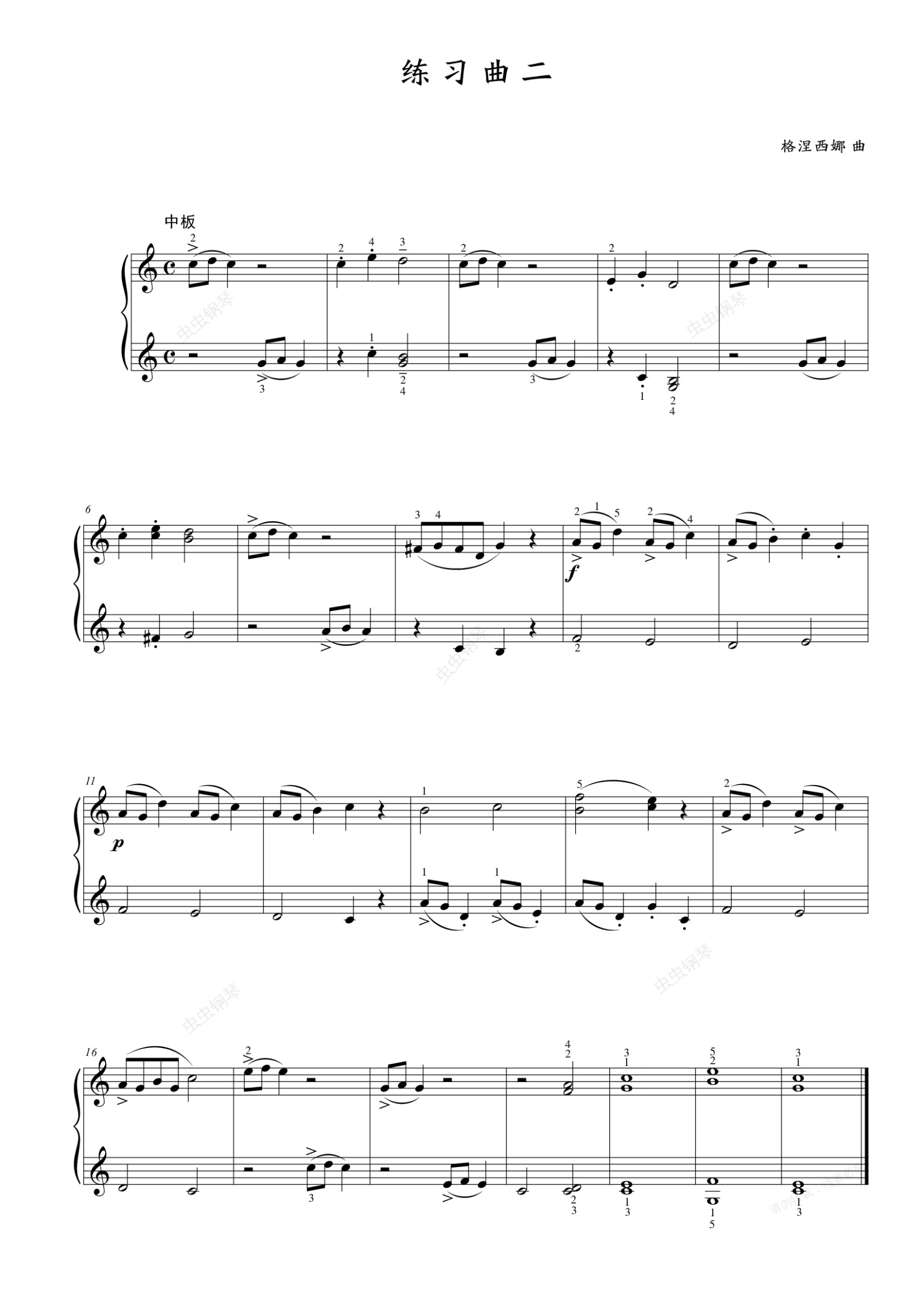 钢琴谱:第一级 练习曲二