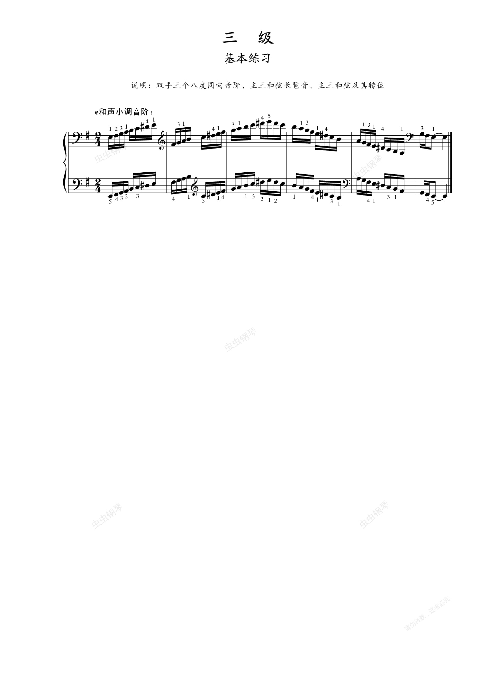 钢琴谱:第三级 基本练习 e和声小调音阶