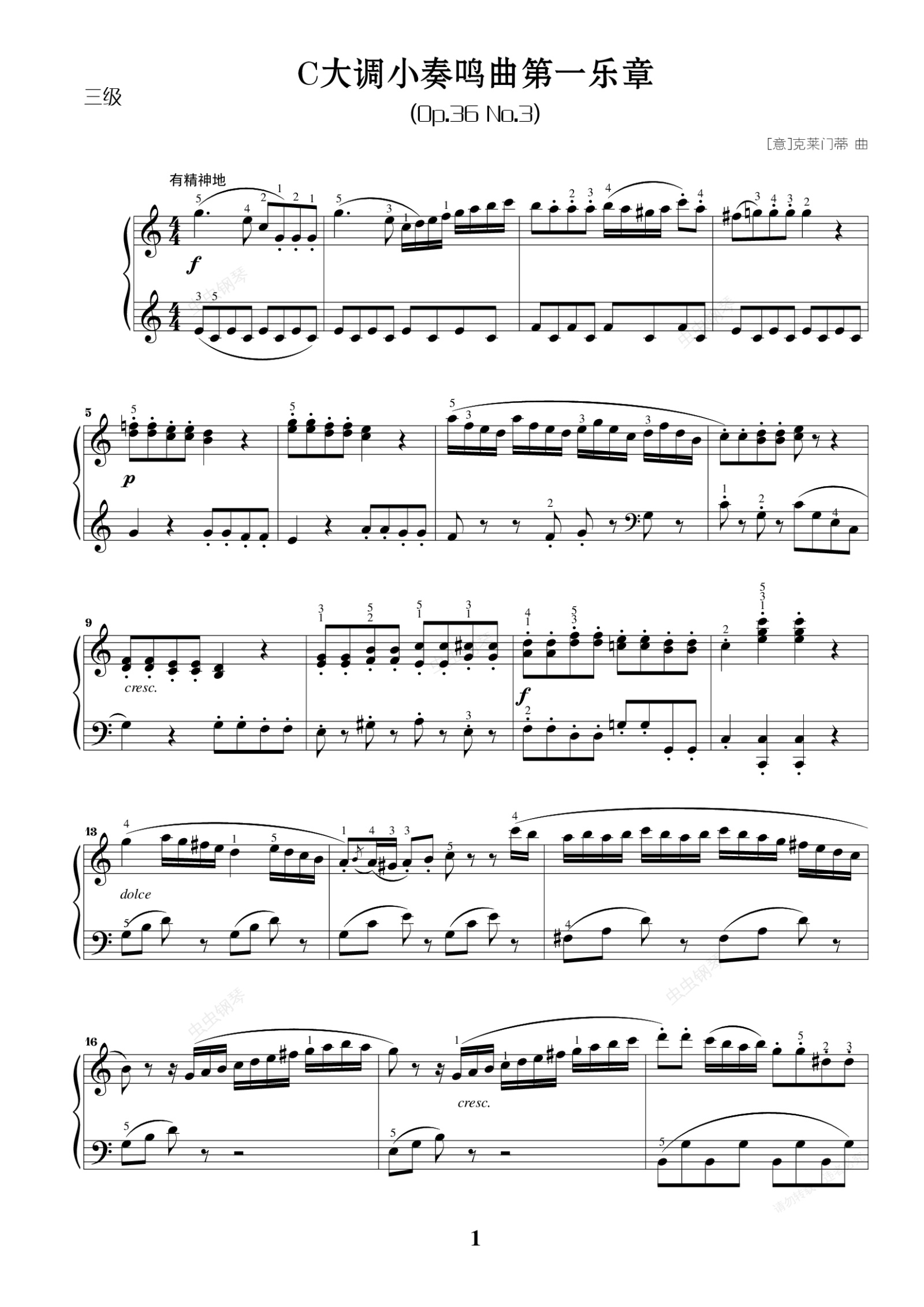 钢琴谱:第三级03C大调小奏鸣曲第一乐章