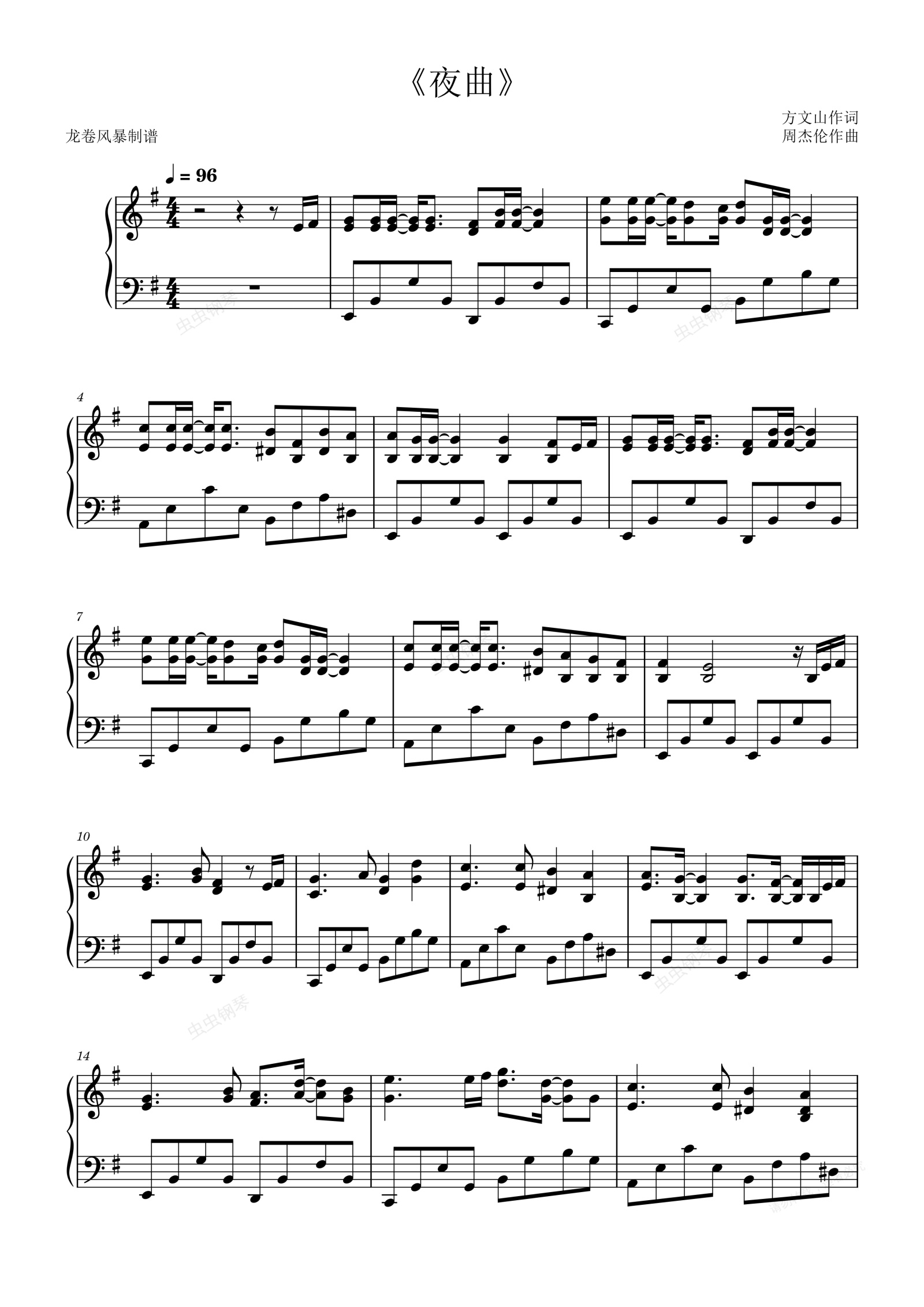 钢琴谱:《夜曲》周杰伦(唯美演奏版)