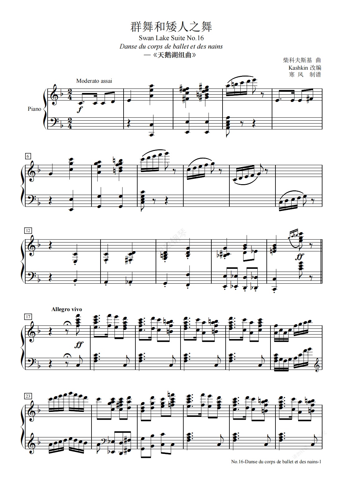 钢琴谱:天鹅湖组曲No.16-群舞和矮人之舞