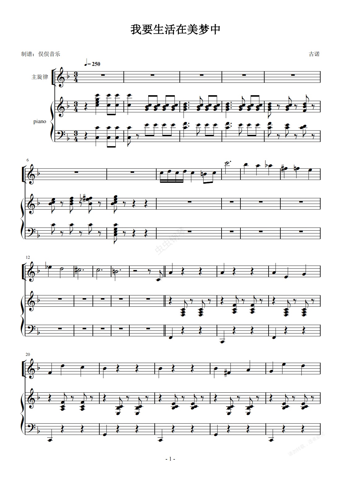 钢琴谱:《罗密欧朱丽叶选段》 - 我要生活在美梦中(伴奏谱)