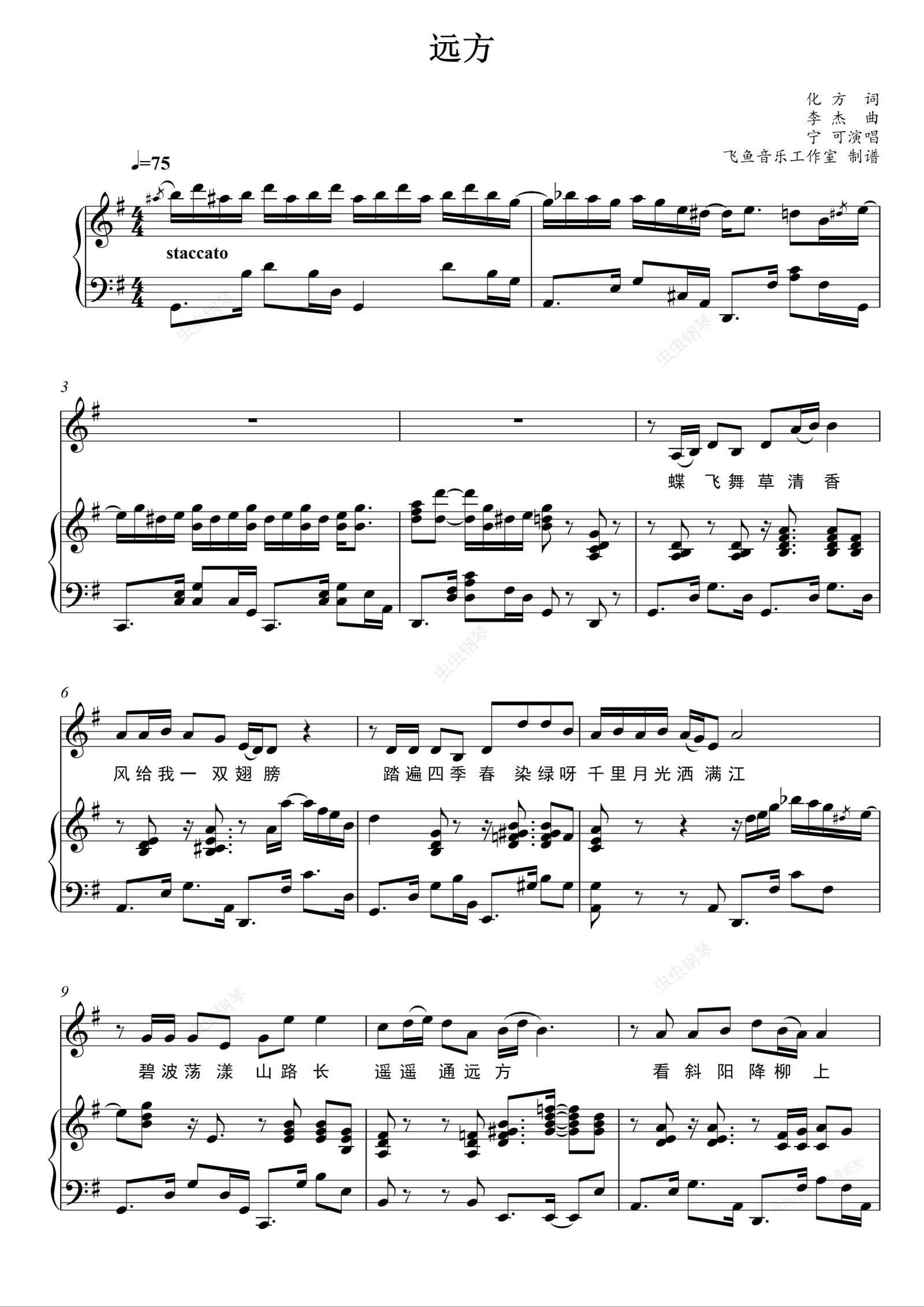 钢琴谱:《远方》- 宁可 弹唱(伴奏)谱 扒谱自刘畅声乐艺术中心版本
