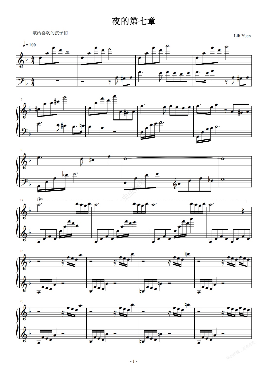 钢琴谱:夜的第七章 原曲 简单(LY)