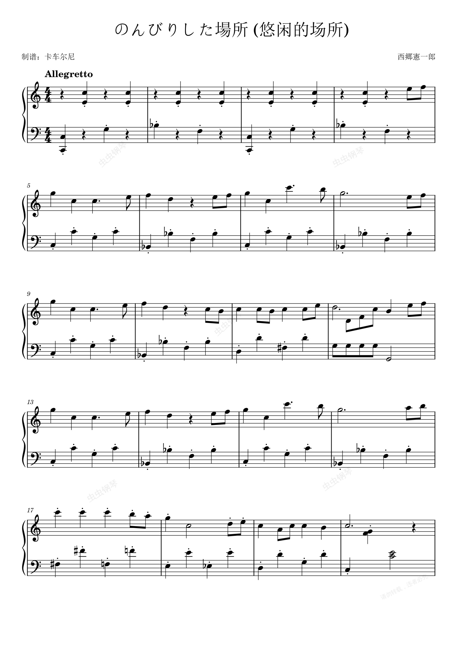钢琴谱:のんびりした場所(悠闲的场所) C大调简单易弹