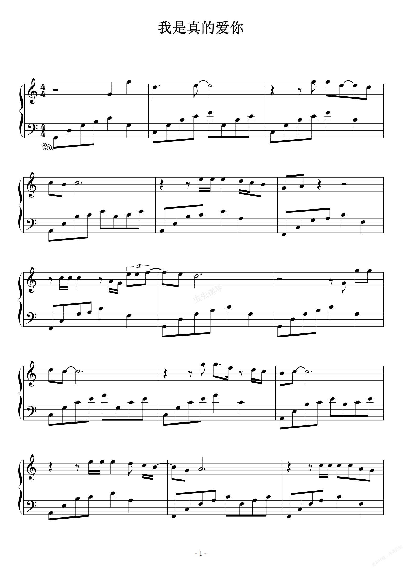 钢琴谱:我是真的爱你 C调简易版 张信哲