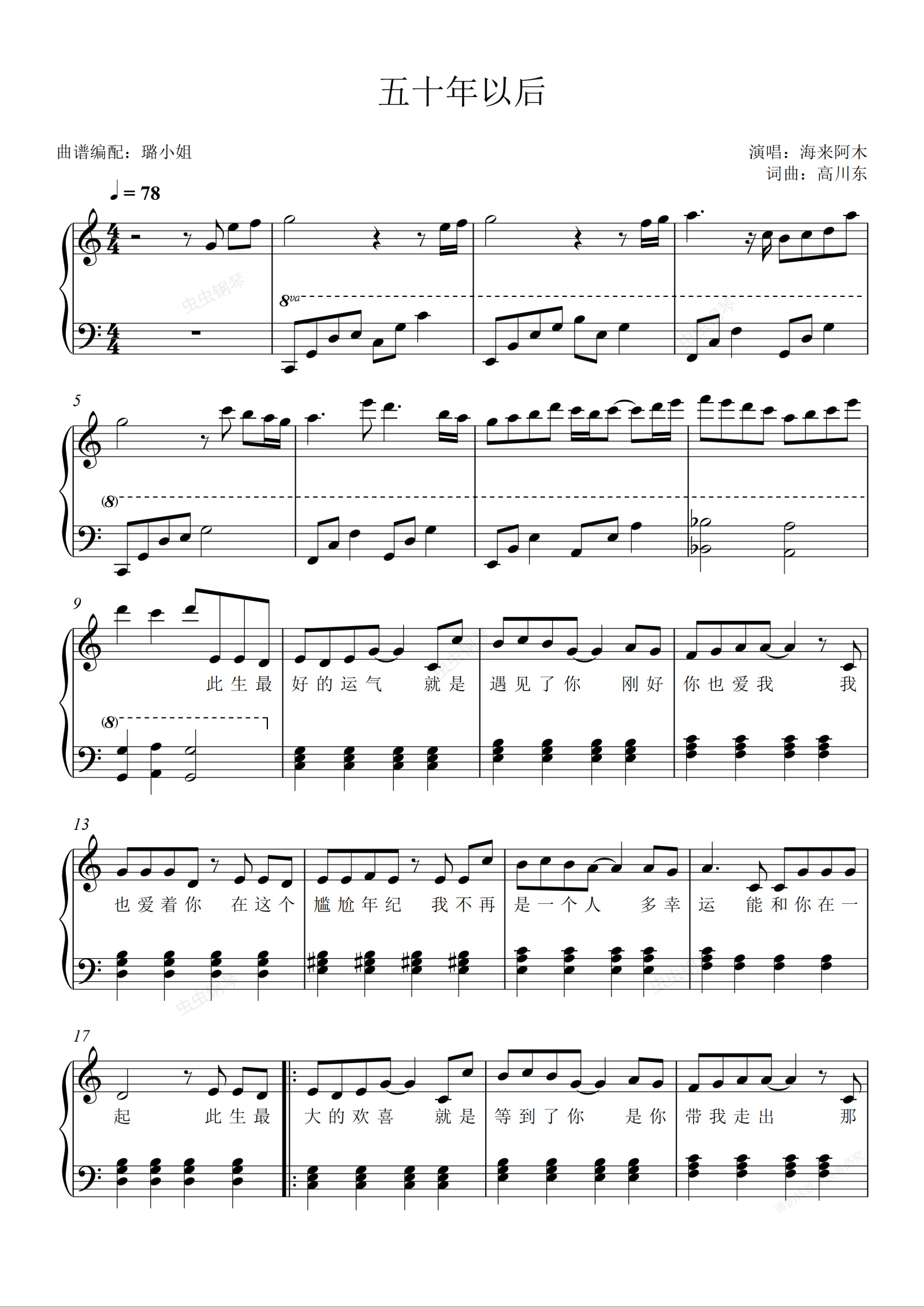 钢琴谱:五十年以后 - C调原调简单版 - 附歌词