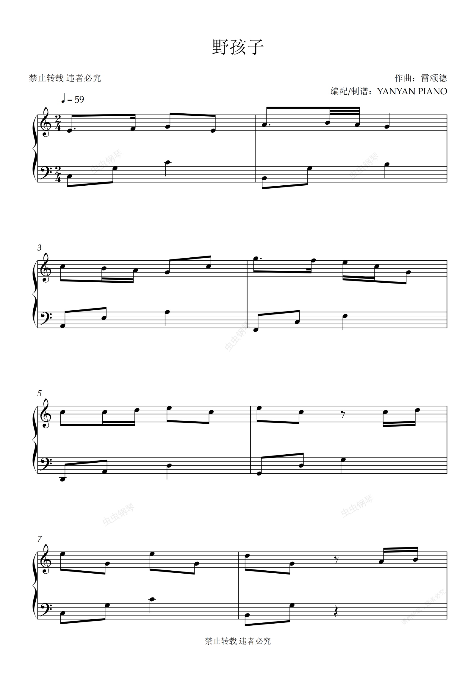 钢琴谱:杨千嬅【野孩子】好听易弹