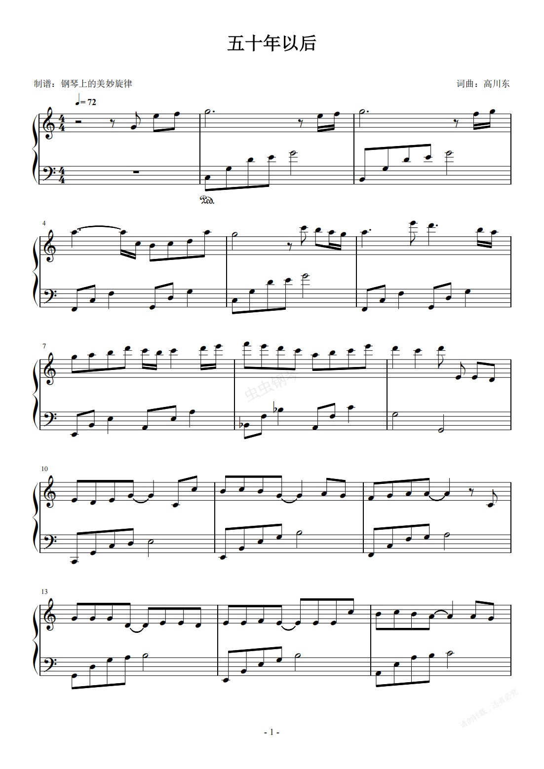 钢琴谱:五十年以后 C调简易版 海来阿木