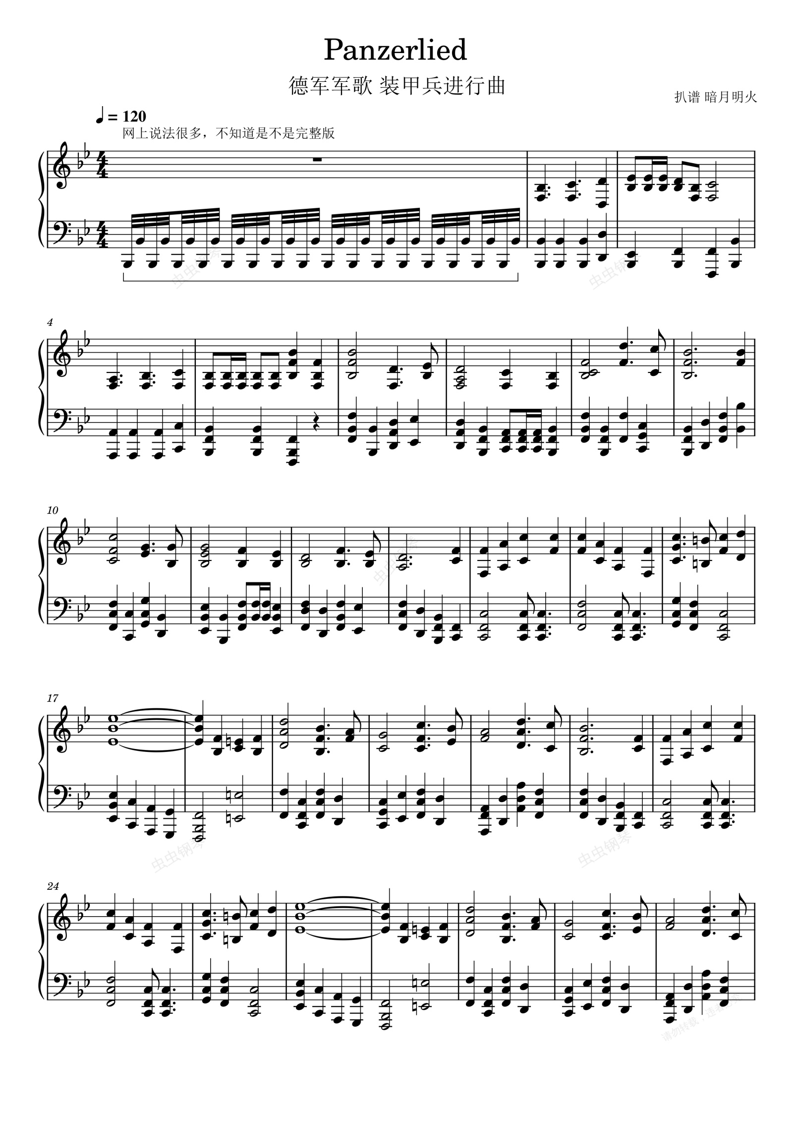 钢琴谱:Panzerlied装甲兵进行曲 大气恢宏德军军歌