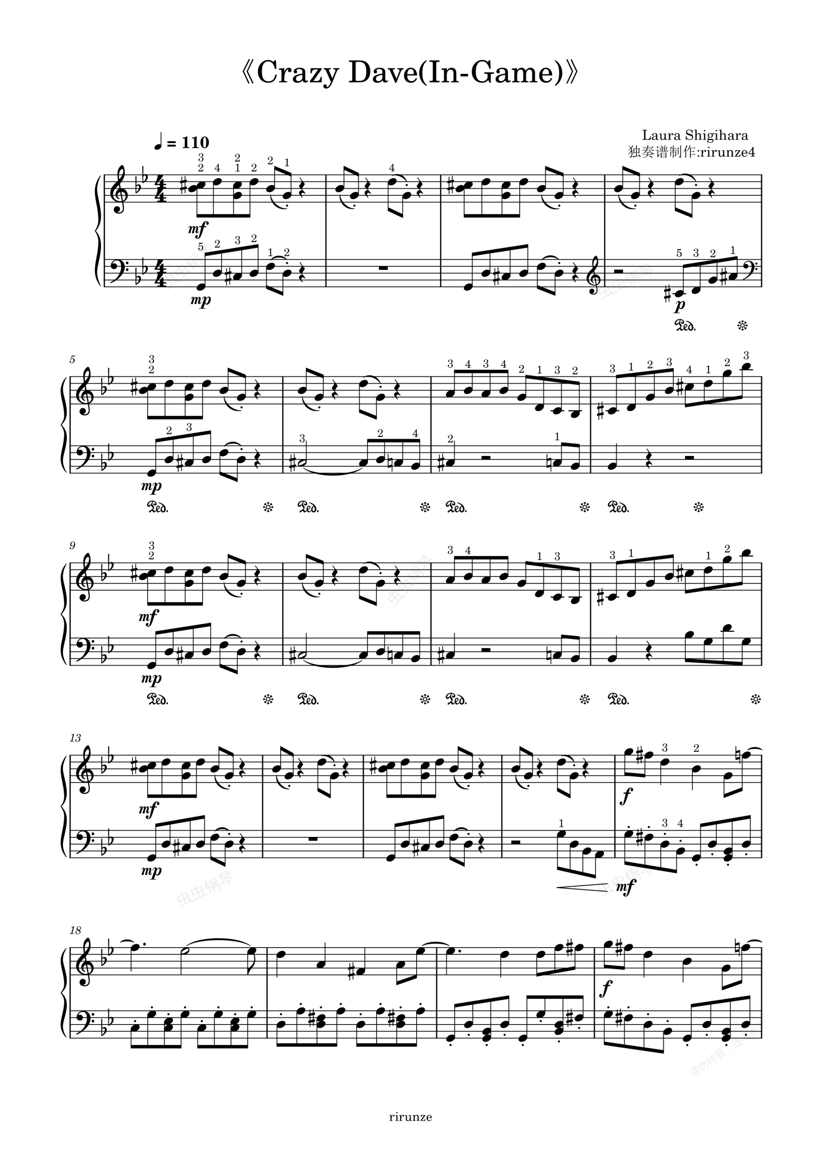钢琴谱:植物大战僵尸-主菜单[Crazy Dave]【独奏钢琴谱】